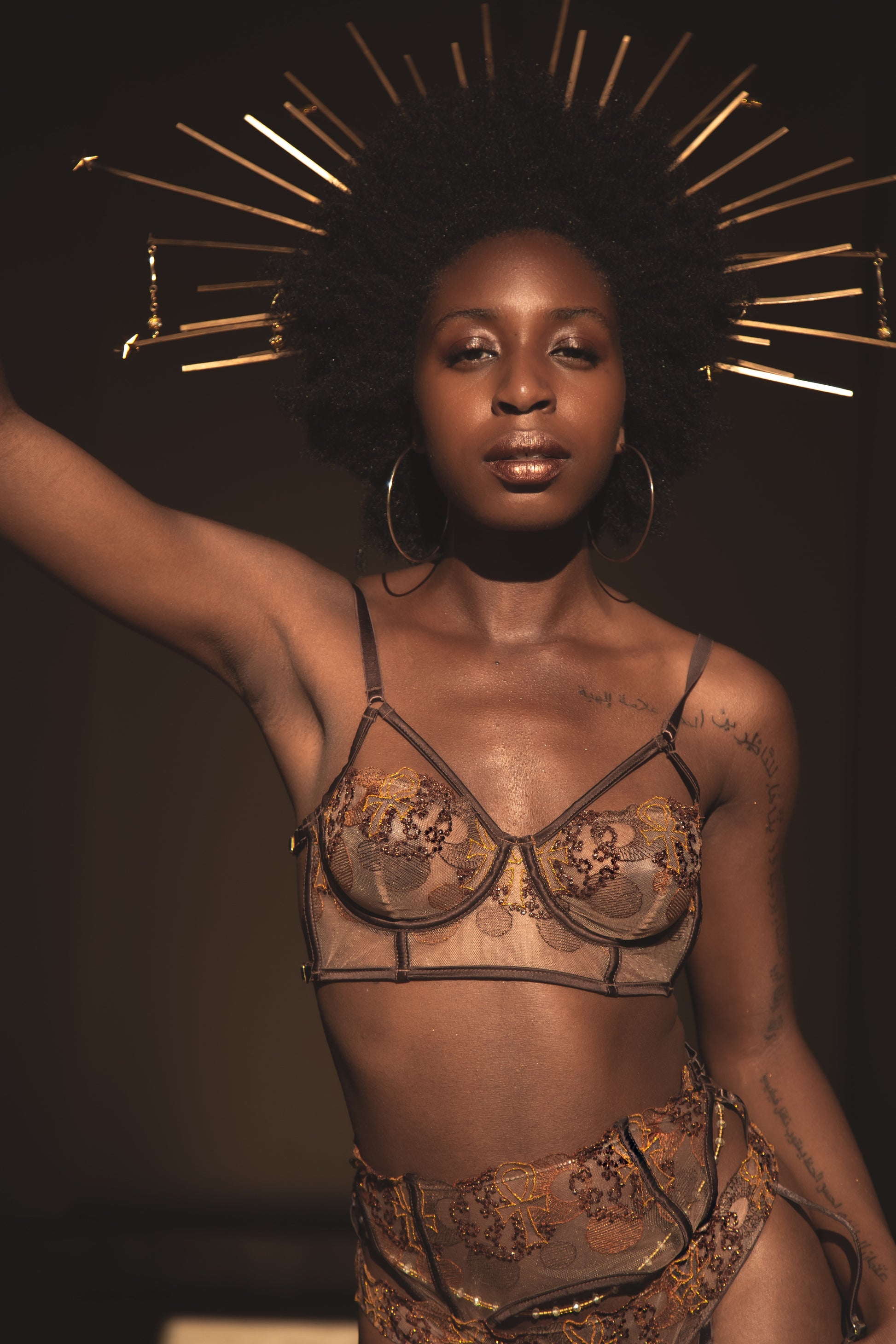 The Divine Feminine Longline bra, the very first style designed by its founder, exudes elegance and sophistication. Crafted with bespoke ankh-inspired embroidery, this bra draws inspiration from the alluring silhouettes of 1950s sirens. The embroidered tulle delicately adorns the breasts, while the extended under-band ensures luxurious support and comfort. With the inclusion of underwiring, it offers a gentle uplift for a flattering shape. The fully adjustable shoulder and back straps allow for a customized fit, tailored to your measurements. Adding a touch of opulence, the 24K gold plated hardware provides a final flourish to this remarkable piece.