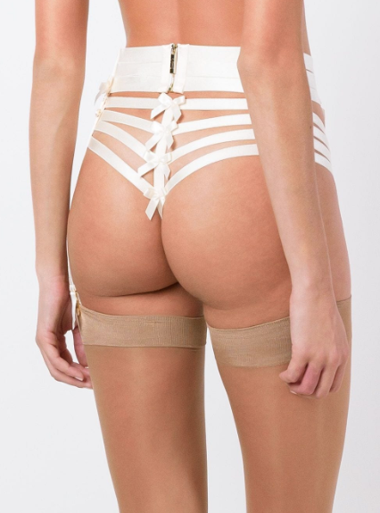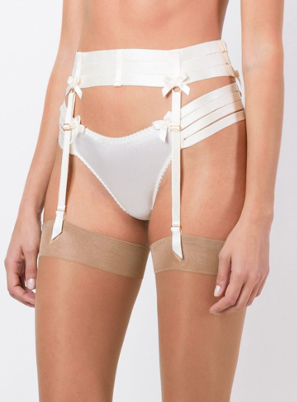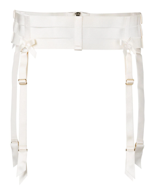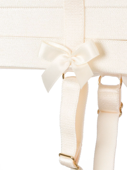 Cream panel suspender from BORDELLE featuring stretch design, adjustable fit, satin finish and 24k gold plated zip fastening.