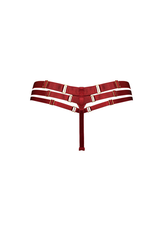 Red Art Deco Multi Strap Thong
