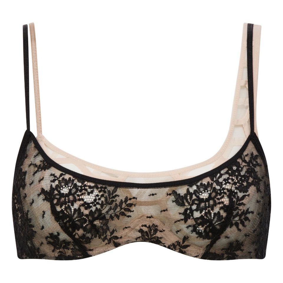 Nude and black layered brassiere bra from Chantal Thomass featuring a scoop neck, sheer panels, a lace detail and a clasp fastening.