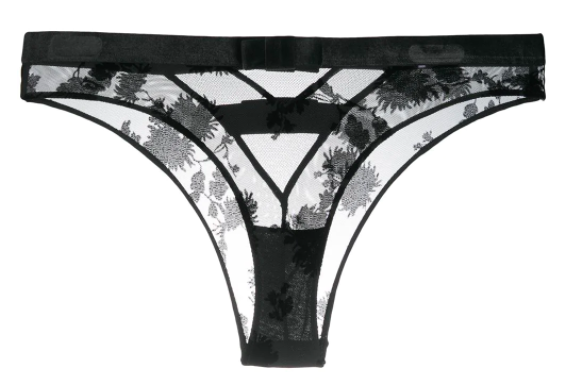 Black Audacieuse flock briefs from Chantal Thomass featuring a mid rise and a slip-on style.