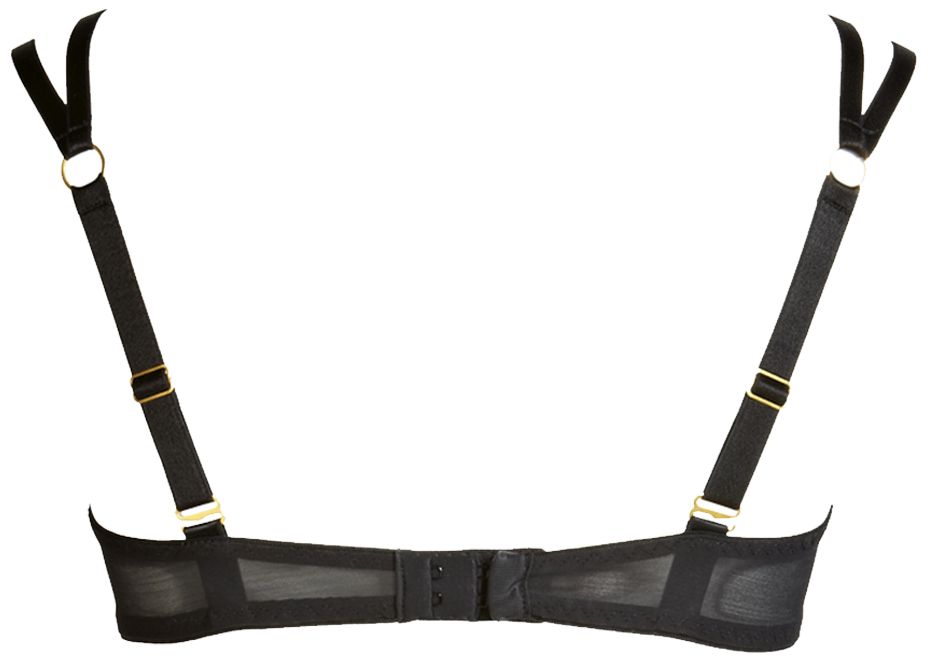 Opulent and alluring, the Ava Half Cup bra is a Something Wicked classic. Its exquisite leather cups are set against a soft suede cradle and silk binding. Its half-cup, directional style creates a tantalising glimpse of skin, whilst still giving enough support. Its twin straps and gold details give the final touch to this Art Deco inspired piece.
