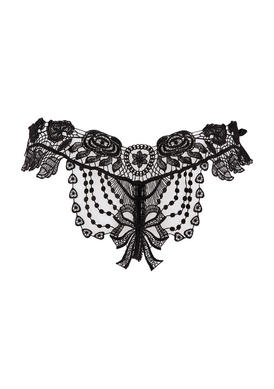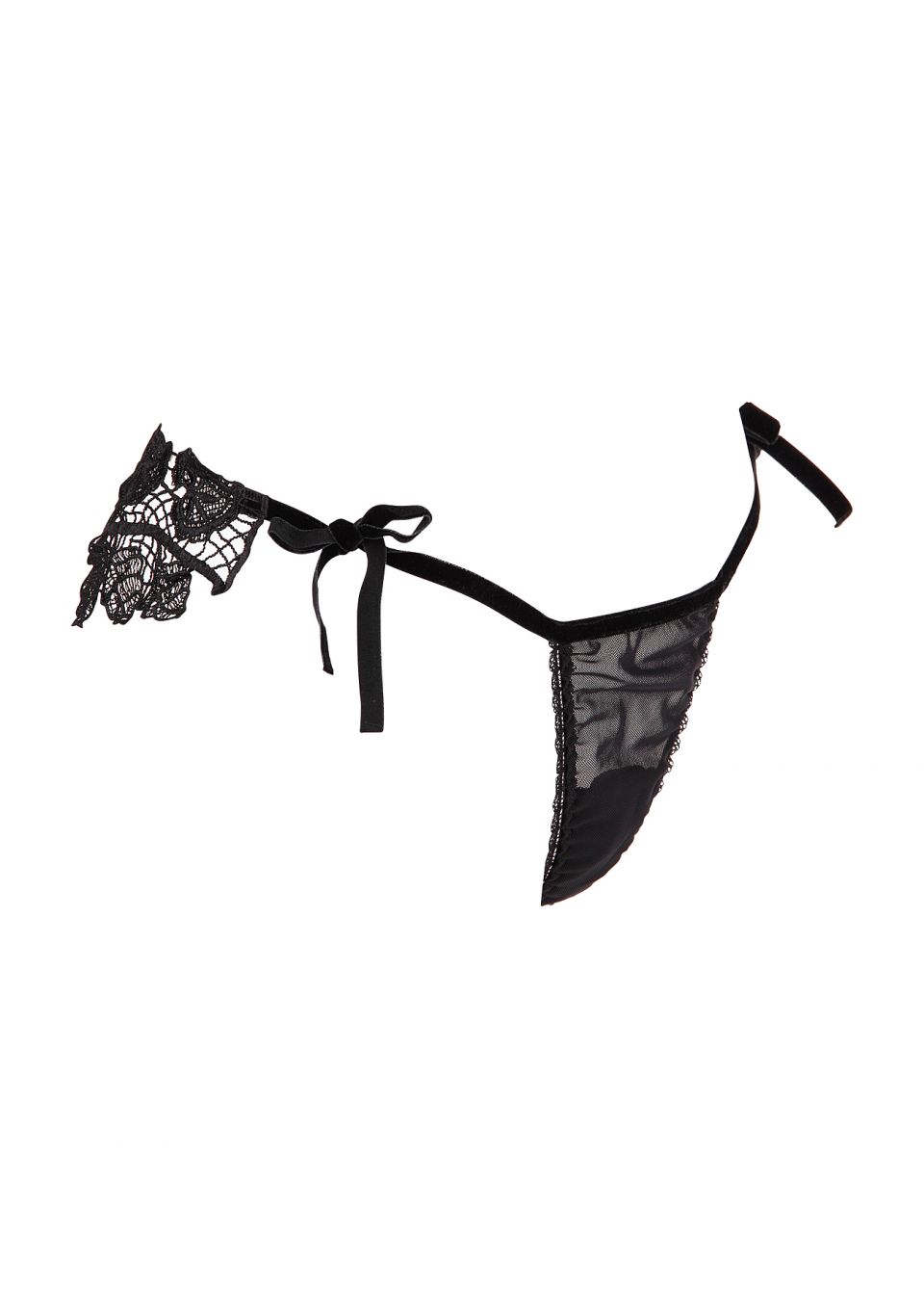 This Bisoux black brief offers a unique and naughty design, with intricate lace on the back these tie side briefs flatter and enhance a womans body.