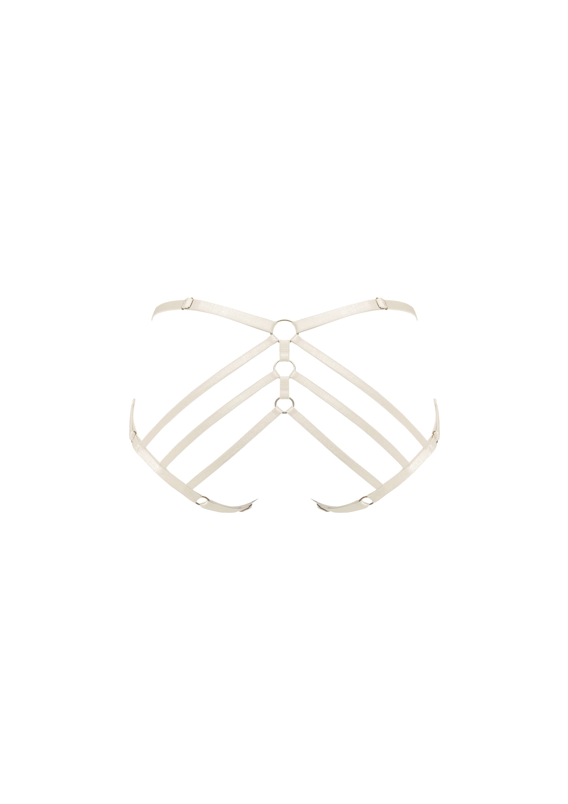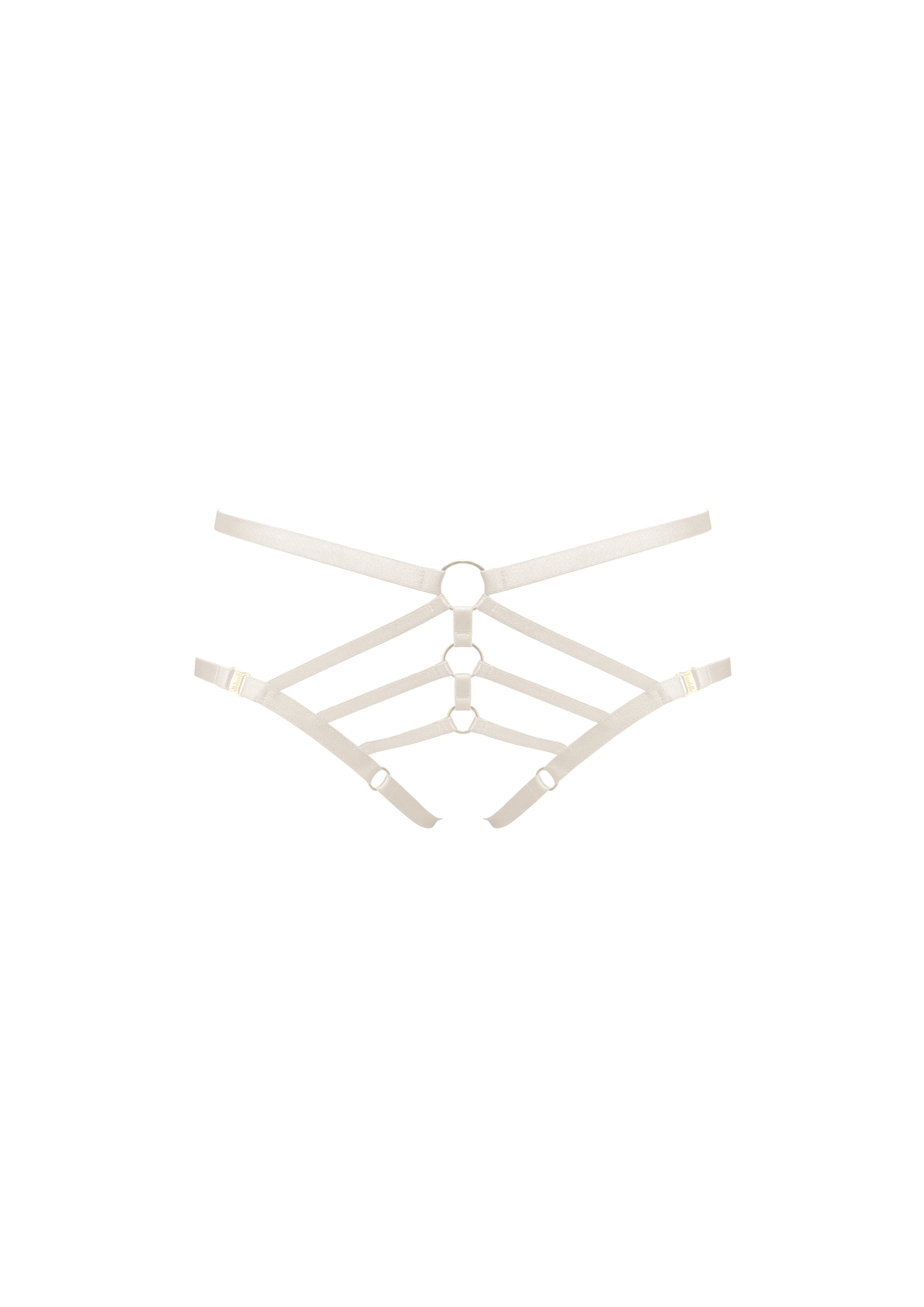 Elevate your lingerie collection with Bordelle's Signature cream satin elastic strapping and 24k gold plated hardware brief. Fully adjustable and versatile, it makes an ideal gift. Wear it alone or layer it over your favourite Bordelle pieces for a captivating look.