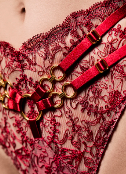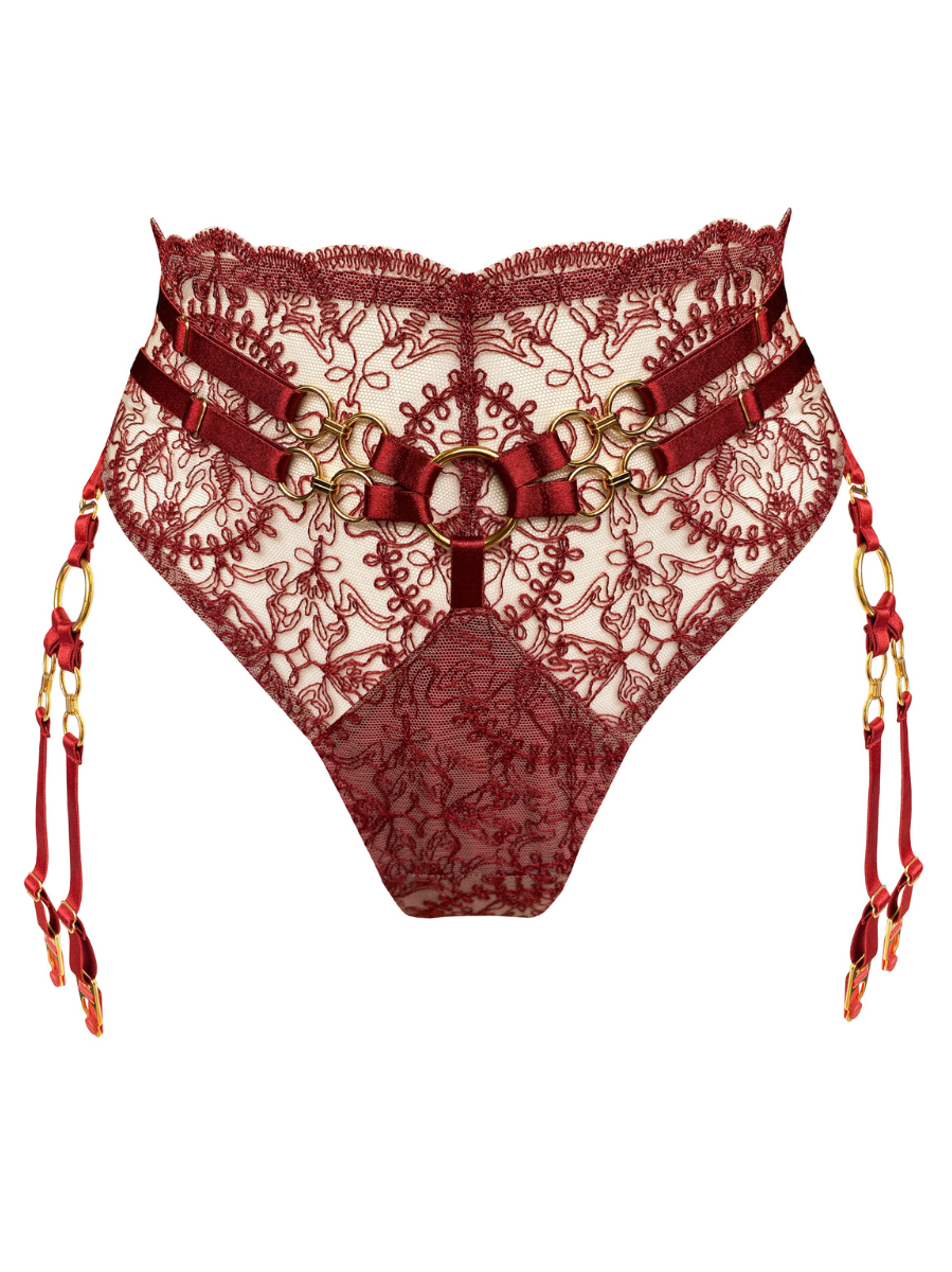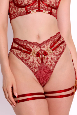 The Cymatic High Waist Thong is designed to elongate your figure, sitting high on the leg this style is sure to impress. Featuring overlaid strap details and an abundance of gold components, this opulent style can be paired with the Cymatic Garters, or detach the suspender straps for a sleek look.