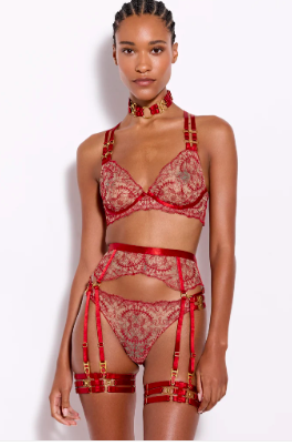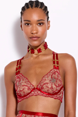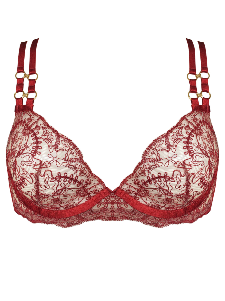 The timeless silhouette of the Cymatic Plunge Wire Bra has been elevated with this season’s bespoke embroidered tulle. This bra features a deep plunging neckline and wired, darted cups. The geometric multi-strap back design offers plenty of adjustment and support. Pair with the Cymatic Thong and Cymatic Suspender for a complete look.