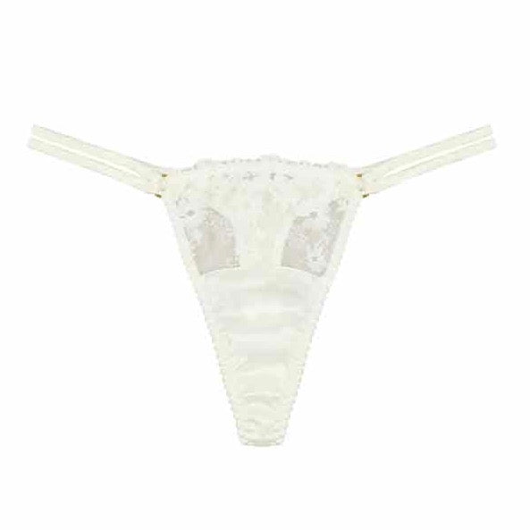 Recycled tulle is adorned with the delicate daisy embroidery design. Silk straps continue to the silk back and are embellished with 24 carat-gold plated rings.