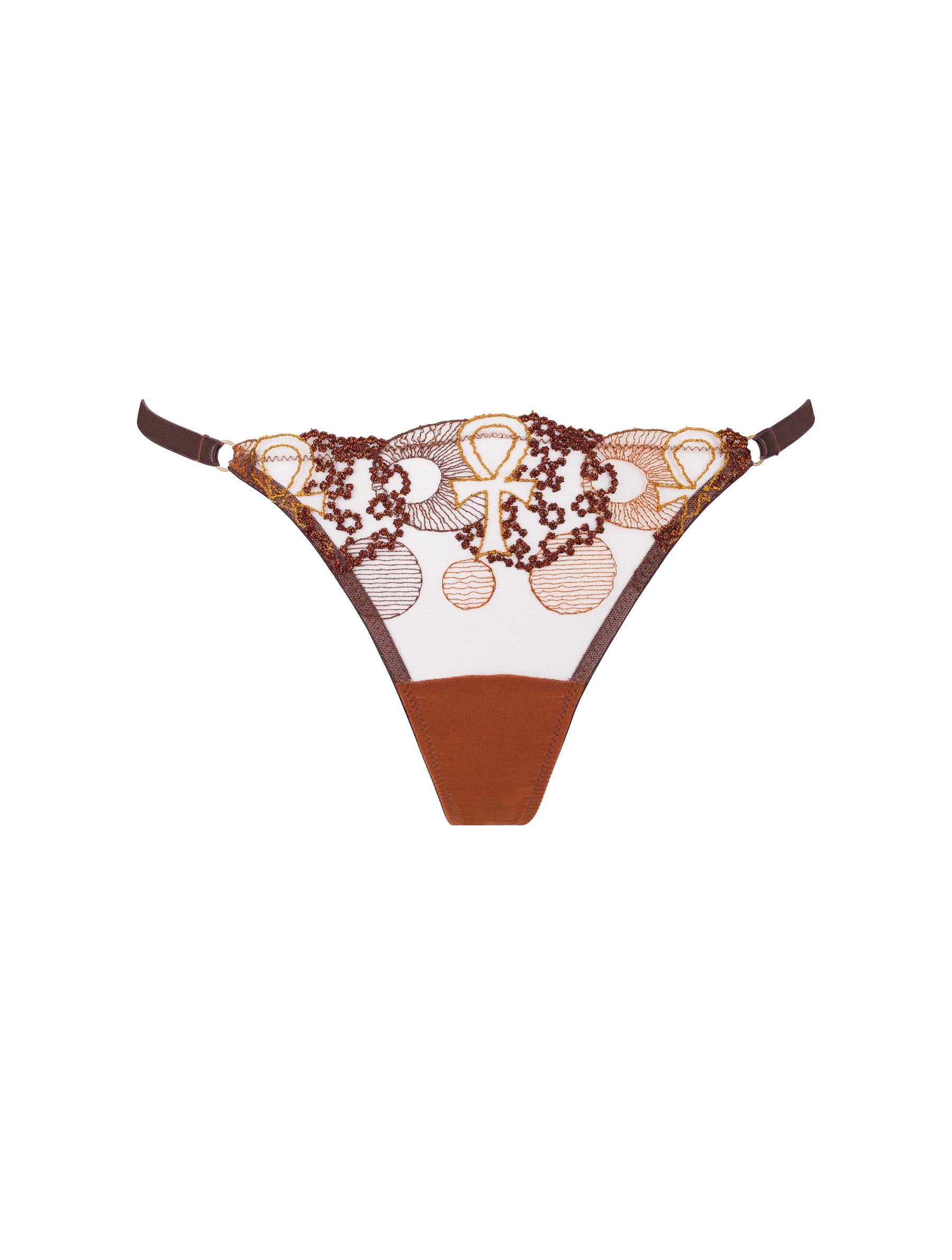 For a stunning ensemble, pair this garment beautifully with the Divine Feminine Triangle Embroidered Bra. Additionally, it is also available with a Mawu Copper gusset, perfectly matching the Mawu Silk & Embroidery Bralette.