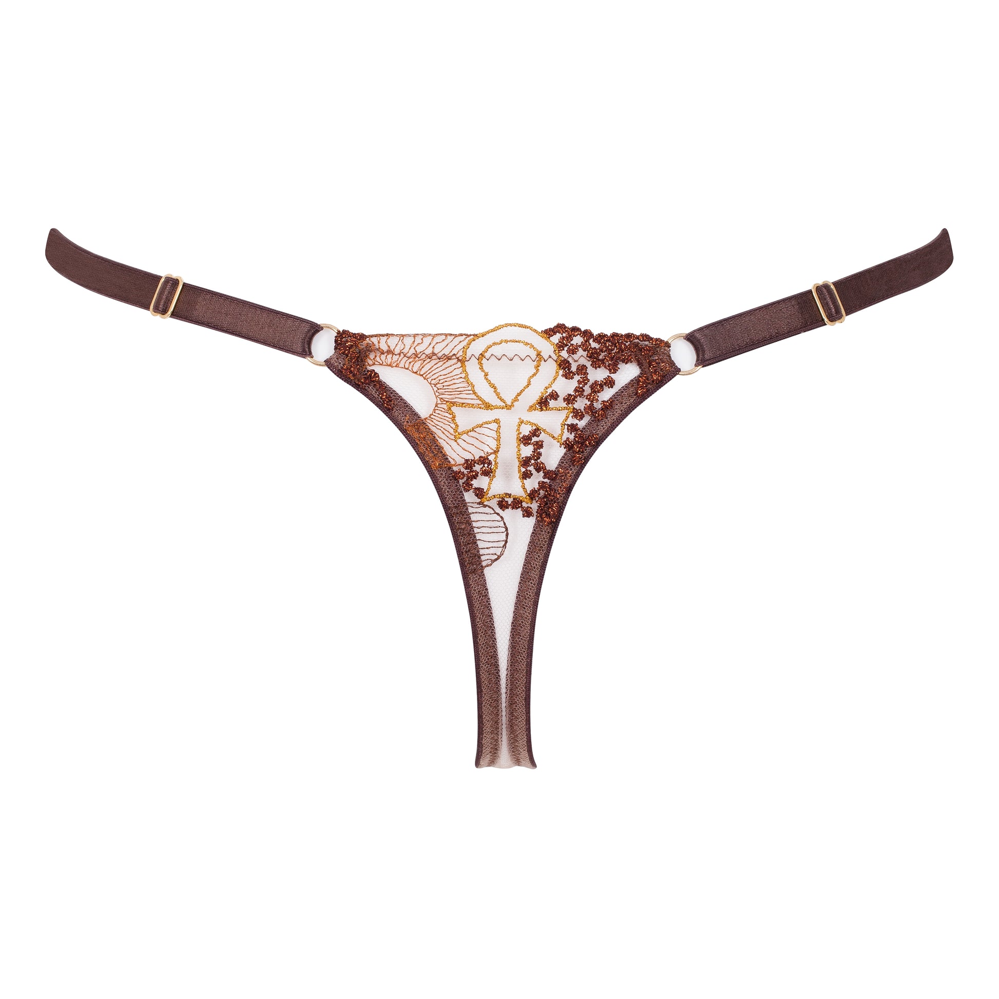 Created to enhance the wearer's curves, this garment is crafted from a unique bespoke Ankh embroidery. Featuring IHUOMA'S incredibly comfortable elastic straps in a rich chocolate color, these adjustable straps ensure a customized fit that flatters your body throughout the seasons. Adorned with exquisite Zanak gold detailing and our signature chocolate silk lined gusset, this piece exudes a luxurious feel, providing utmost comfort throughout the day.