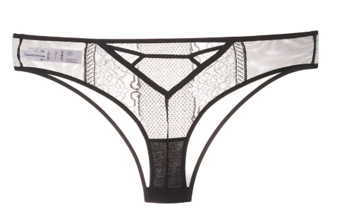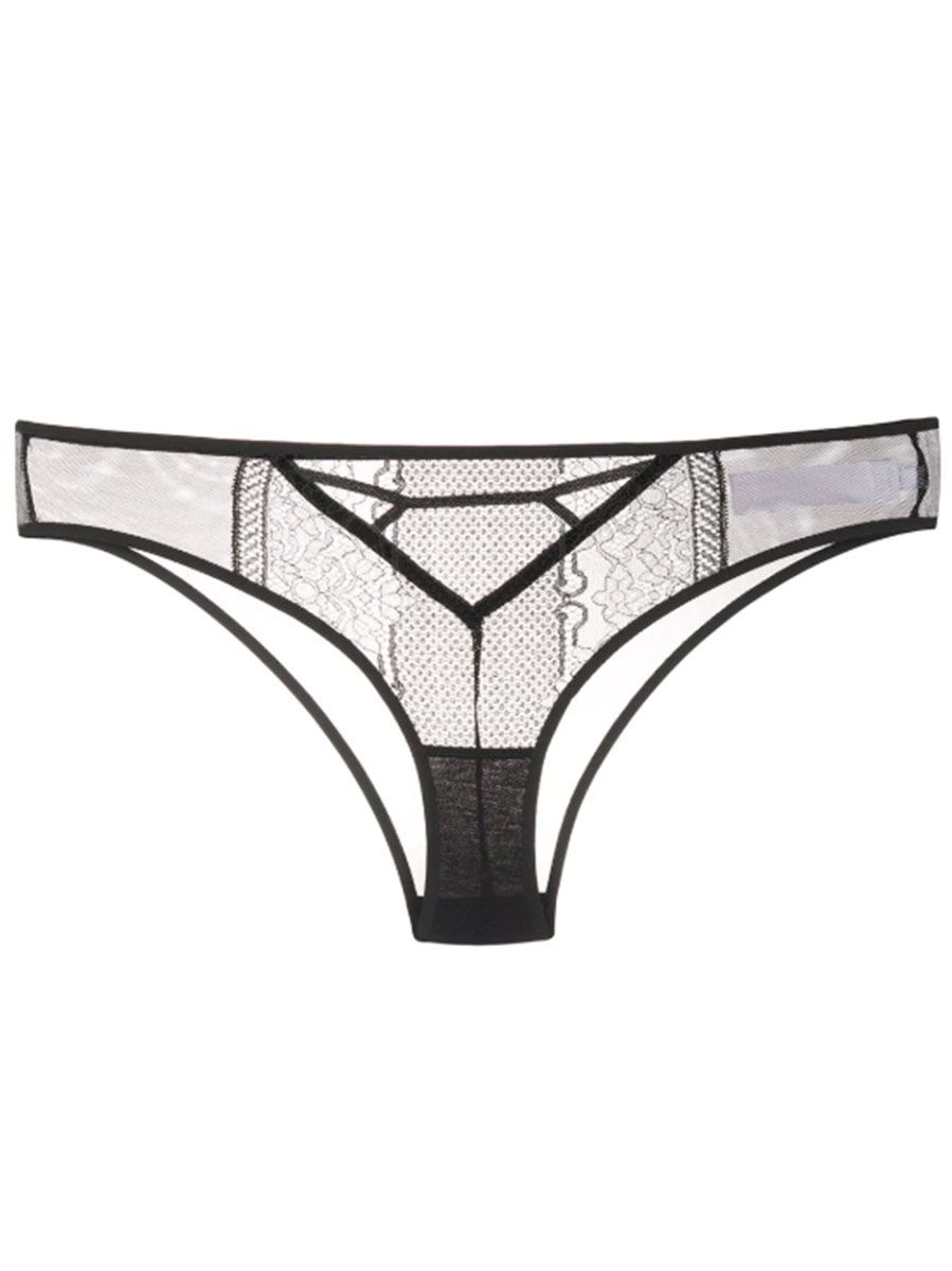 Black sheer briefs from Chantal Thomass featuring a brief style bottom, a string style bottom and a lace pattern.