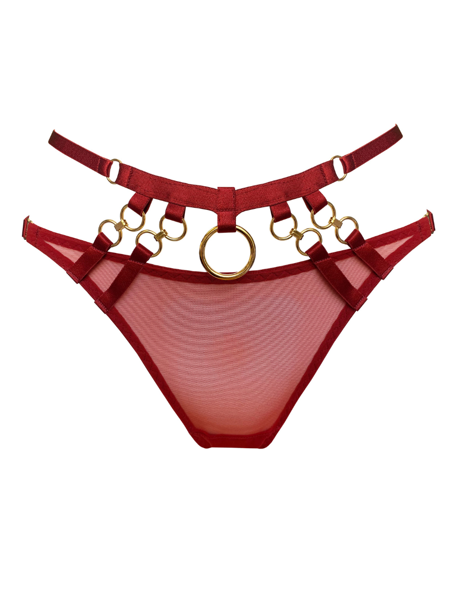 The Kleio Open Back Brief displays an oversized 24k gold plated ‘O’ ring at the centre front and centre back, this bondage inspired brief features an abundance of our new chain-link component.