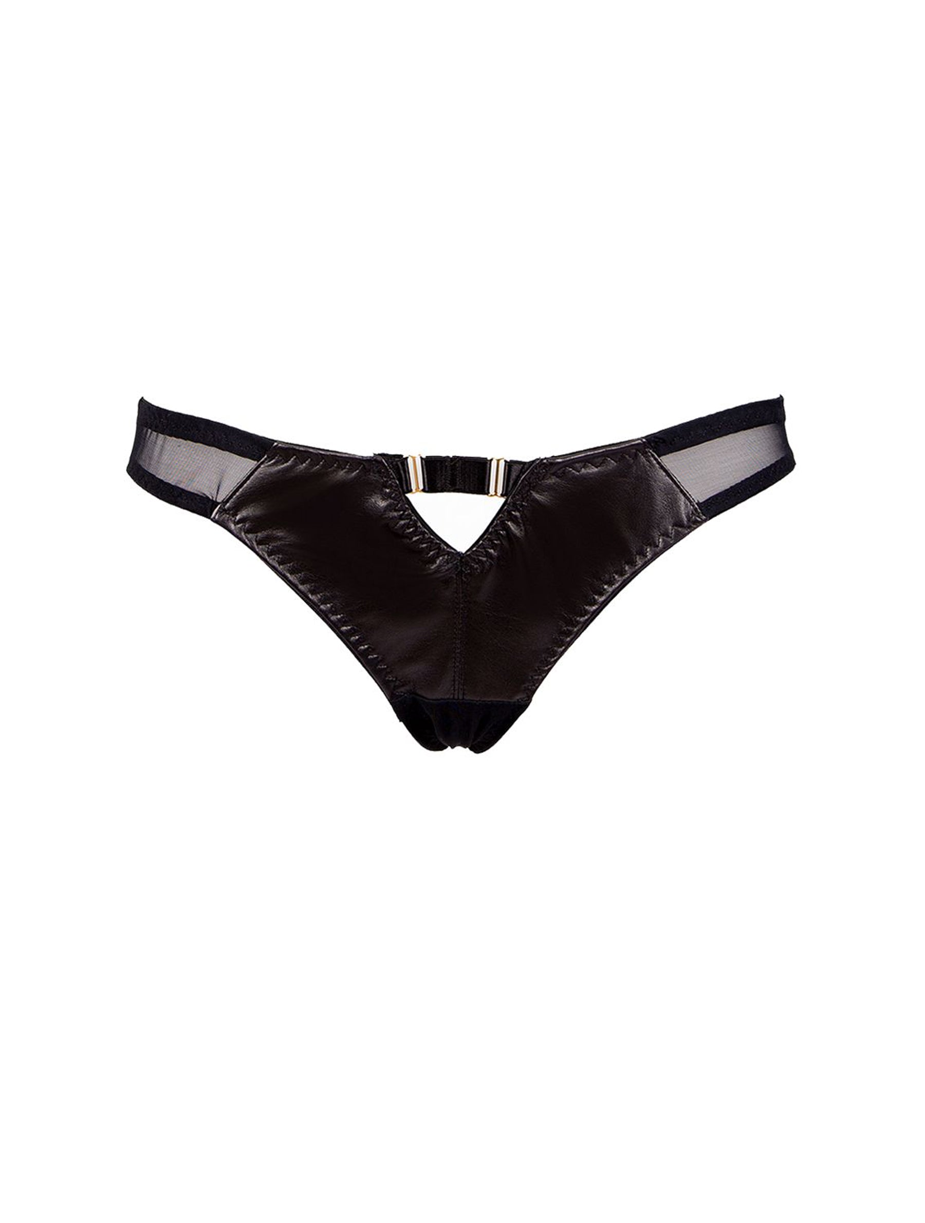 The classic Montana cut out detail is featured on the front of this soft, leather thong. Finished with bold elastic details, this thong is bold yet simple with its eye catching modern design. Wear with the Montana soft cup and Montana suspender for maximum impact.