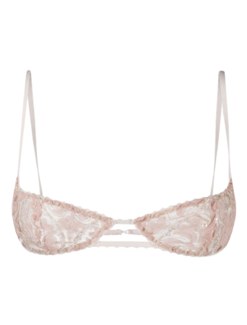 Blush Ophelia soft-cup bra from Belle Et Bon Bon featuring adjustable shoulder straps, a soft cup style and a rear hook and eye fastening.
