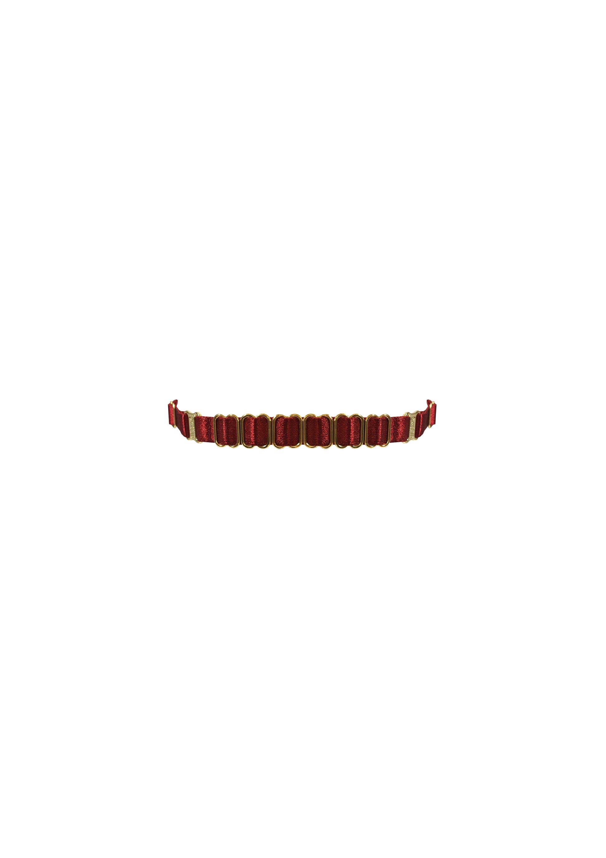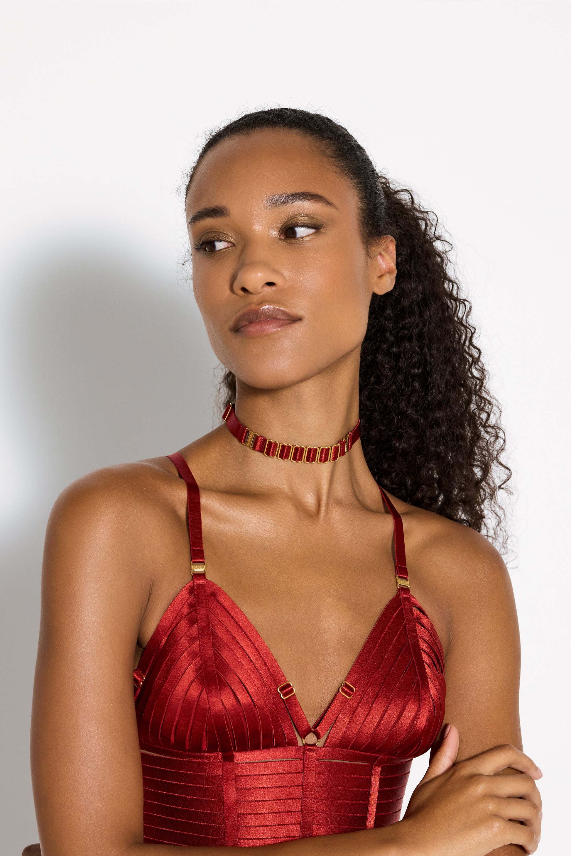 Delicate and refined, this collar is the perfect gift for anyone with a passion for all things Bordelle, featuring a single satin elastic strap, embellished with 6 24k gold plated sliders. Complete your look with the Strap Collar for a subtle hint of kink.