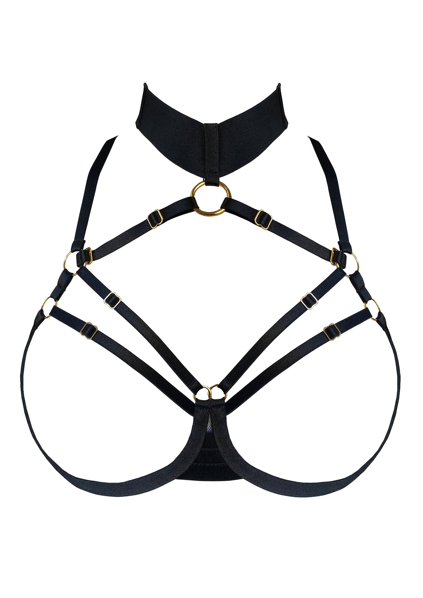 An underwired open cup bra featuring adjustable harness strap detailing for a personalised fit. The detachable collar allows for multi-way styling that is perfect for layering or wearing alone with Nipplets.