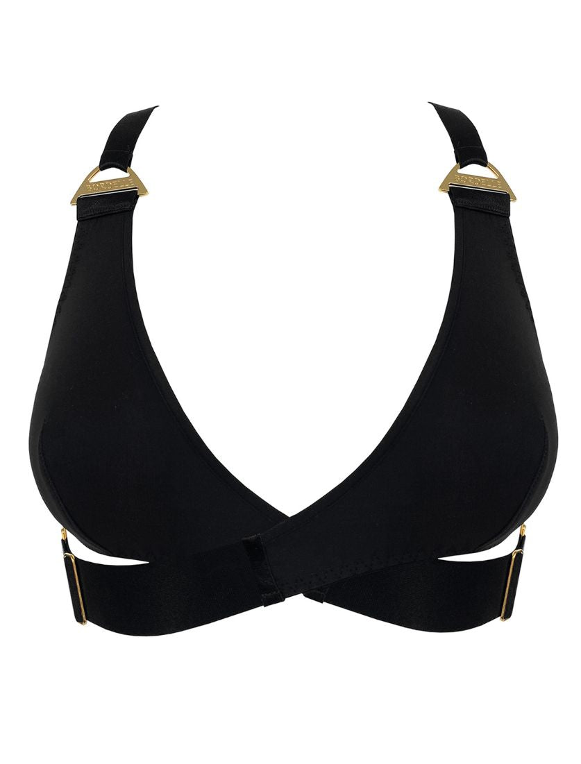 A soft cup, wrap front bra in super-soft opaque jersey, complete with new 24k gold plated branded component at each apex. Secured at the sides via two 24k gold plated swan hooks, and adjustable throughout for the perfect fit.