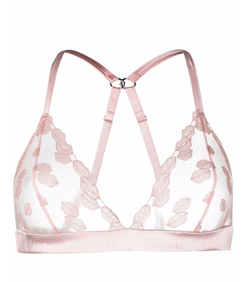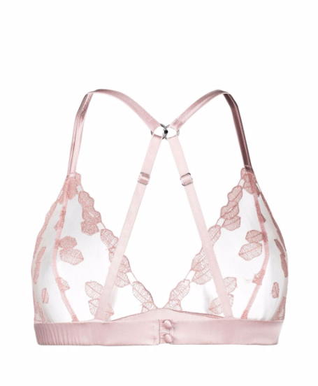 crepe-pink sheer panelling pattern-lace detailing triangle cup rear button fastening adjustable spaghetti straps It is essential that you try on underwear and lingerie over your own garments. We trust you to follow the rules.