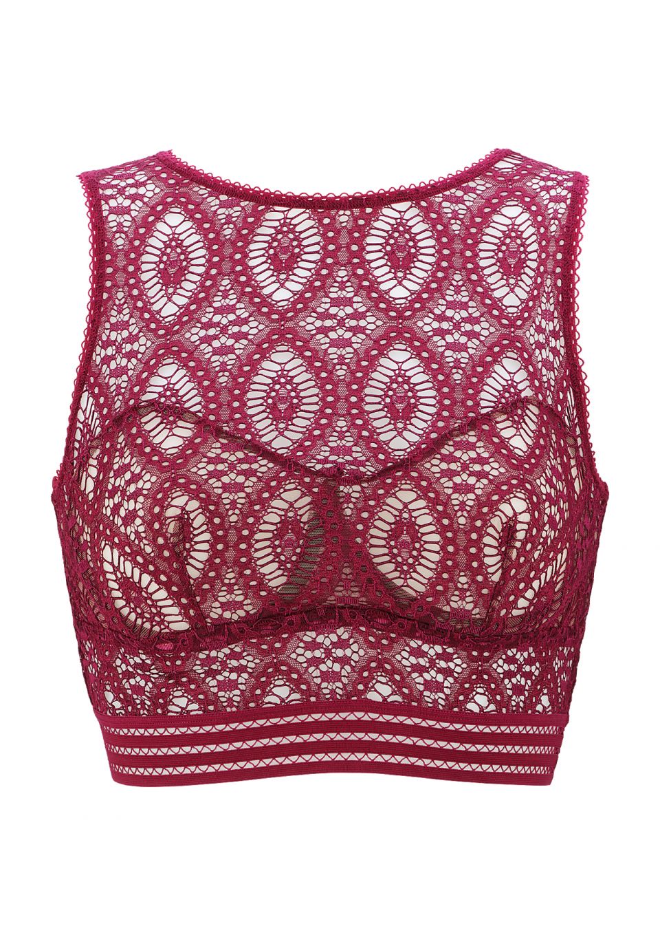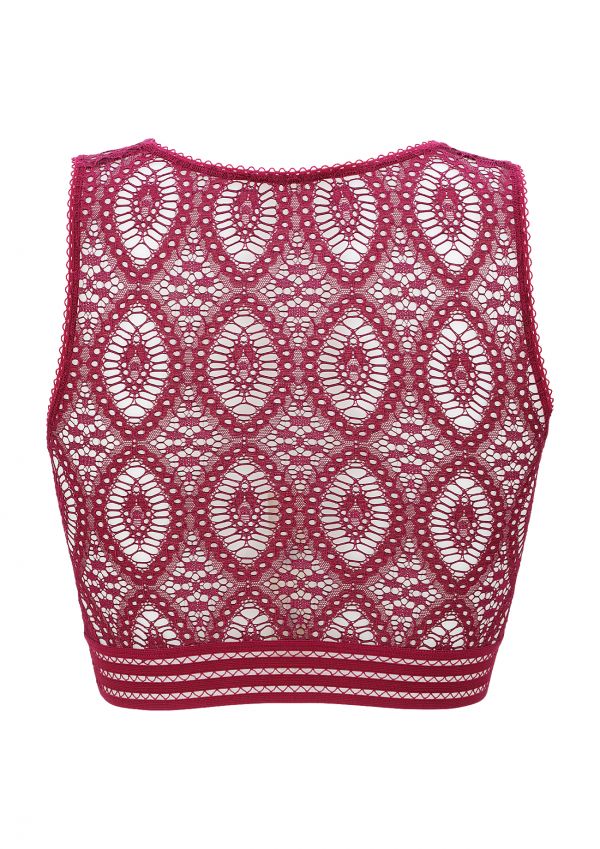 The Baroque Cropped Tank Bra has a sweeping high neckline and an intricate lace pattern reminiscent of a bygone, splendorous era. With included underwire for support, a novel idea to make crop tops more practical.