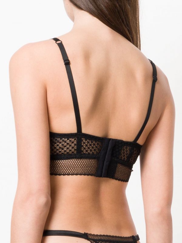 The Bella Triangle bra is a study in geometry: the triangular inset between the two soft cups lends a graphic pattern play that’s chic and sleek. A sheer, wide band gives this bra a lightweight, longline silhouette. The Bella collection is a little daring, a lot of sexy and surprisingly practical. Made with our original stretch pointelle mesh that looks like a mini checkerboard up close and a chic fishnet from a distance.