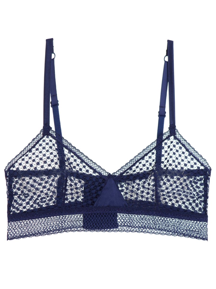 Else's new Bella Triangle bra is a study in geometry: the triangular inset between the two soft cups lends a graphic pattern play that’s chic and sleek. A sheer, wide band gives this bra a lightweight, longline silhouette.