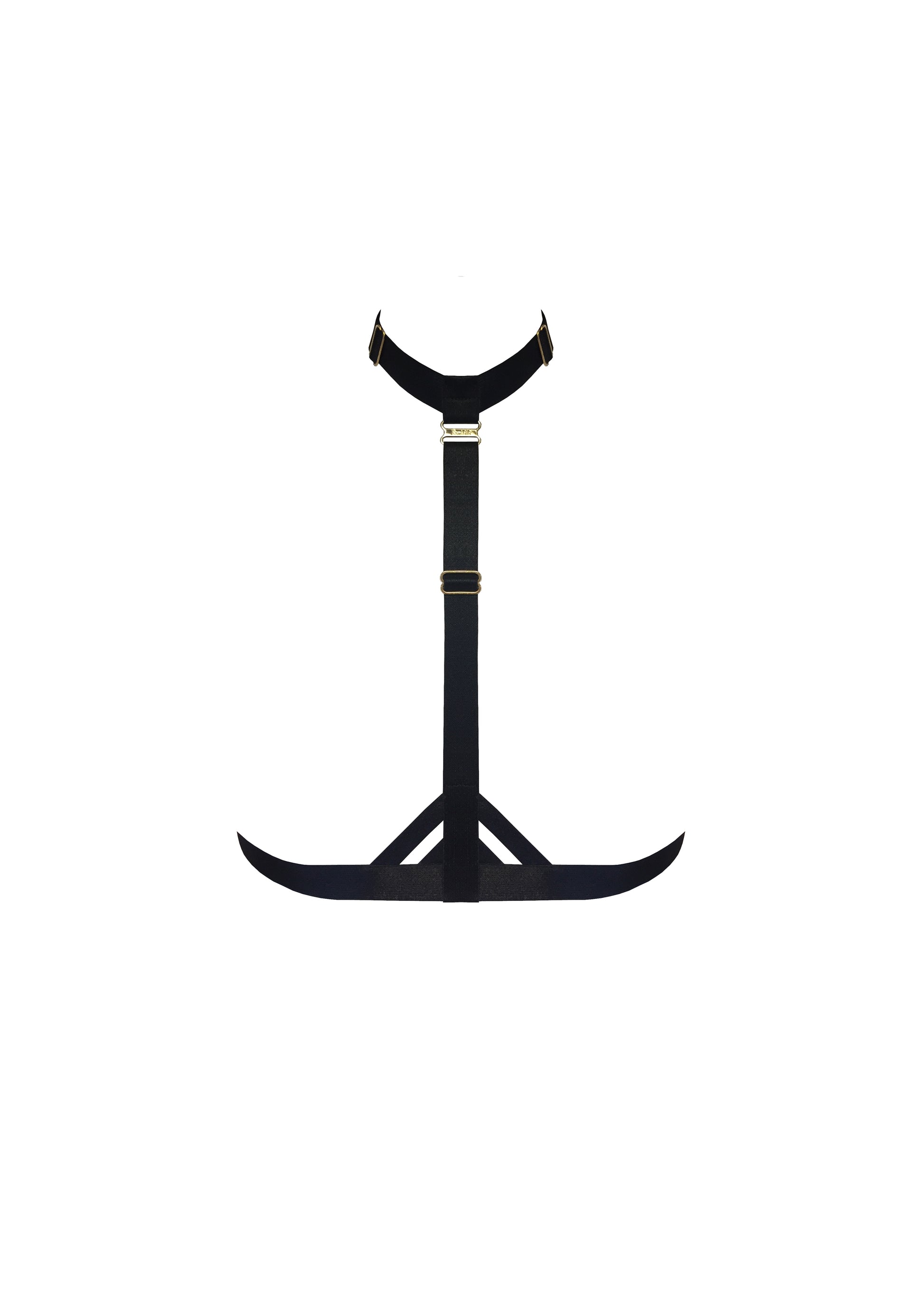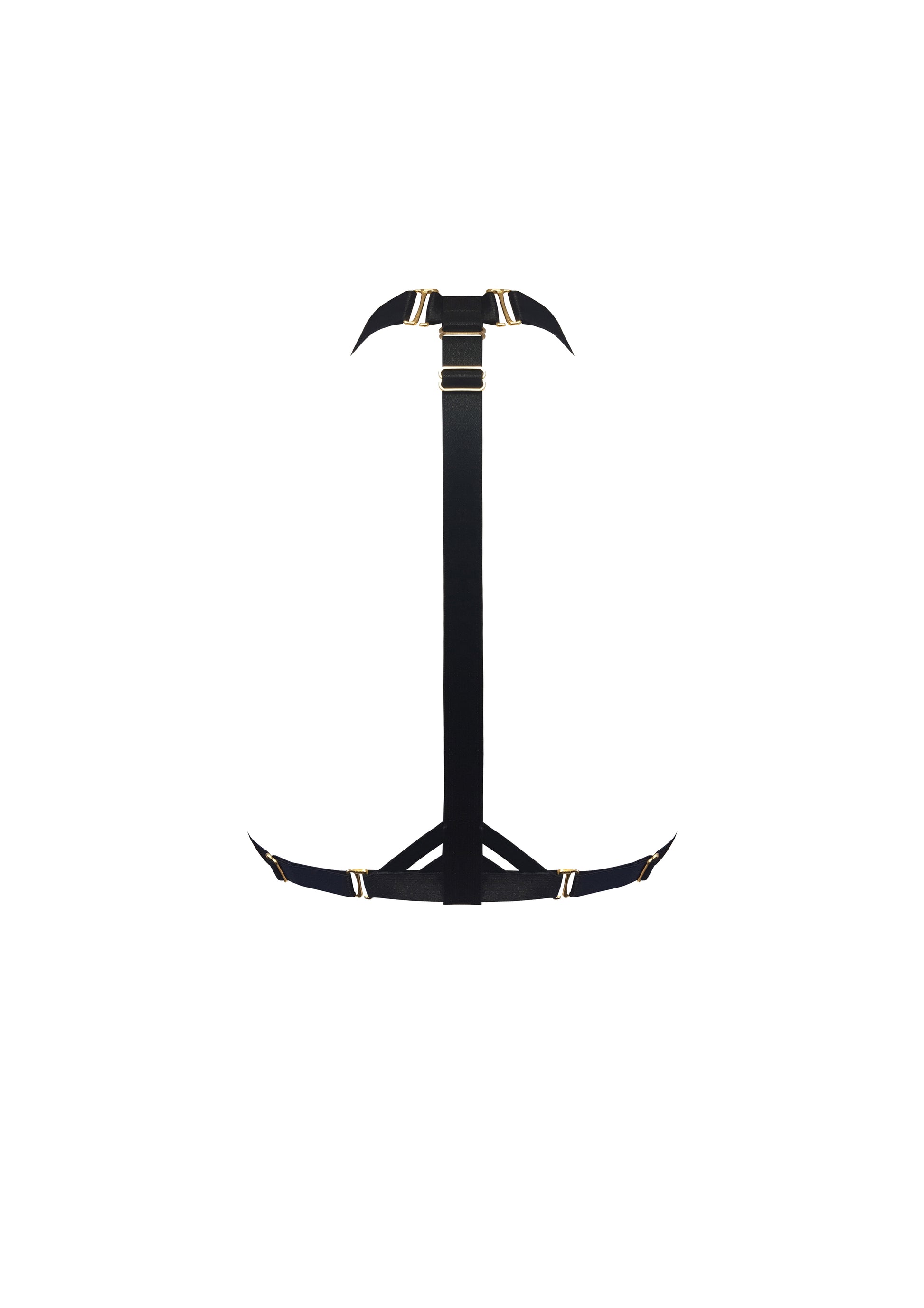 A simple yet elegant harness in luxurious black satin elastic strapping. Fully adjustable for a personalised fit, this versatile piece can be worn alone, layered over a bra or styled with outerwear.