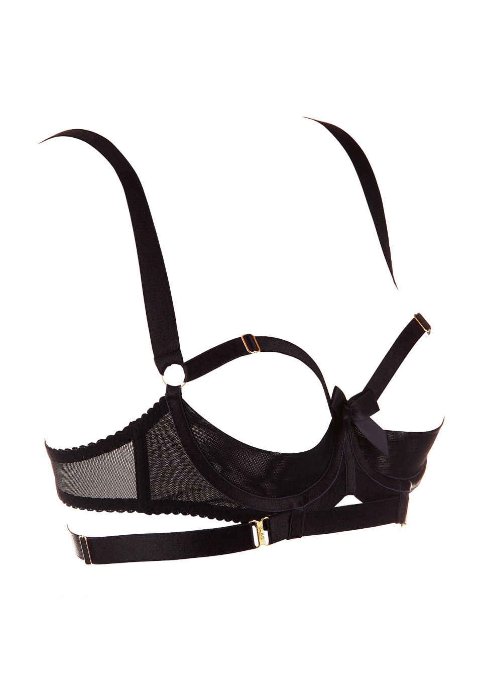 A captivatingly sexy shelf bra with Bordelle's signature black satin strap detailing making seductive contour around the bust. This is a striking piece that shows just who is in control.