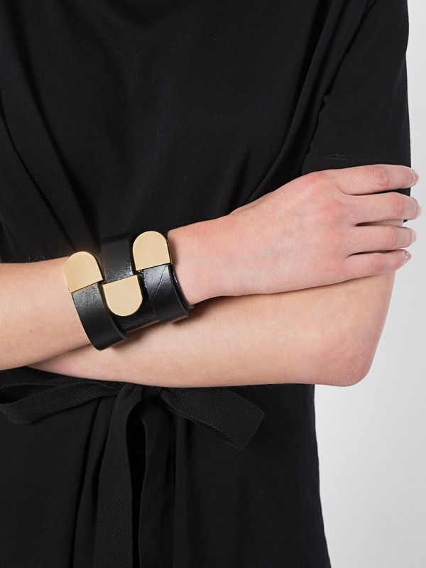 The Shirley Bracelet is made with smooth genuine leather and fastens with rivets on the forearm. All cuir is dyed with colouring matter of vegetable origin, therefore hypoallergenic and eco-friendly. All handmade in Italy.