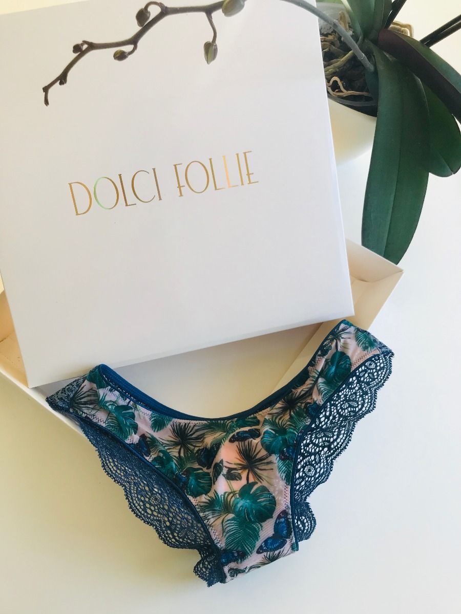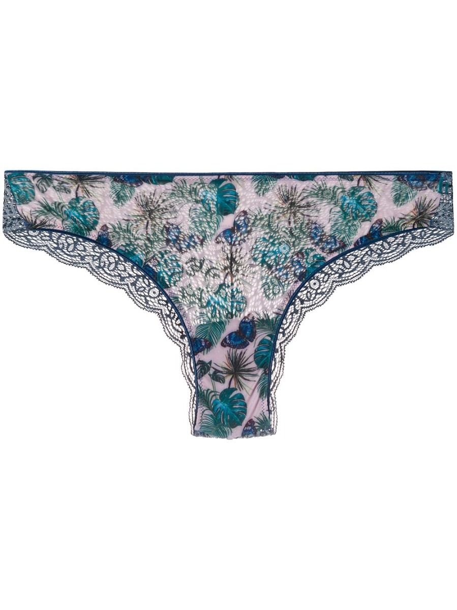 Blue cotton blend butterfly brazilian briefs from Dolci Follie featuring an elasticated waistband, lace inserts and a stretch fit. Underwear and lingerie must be tried on over your own garments.