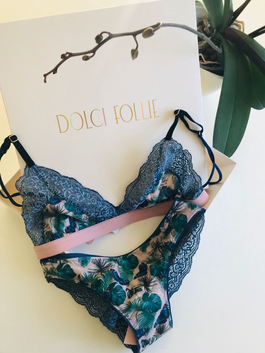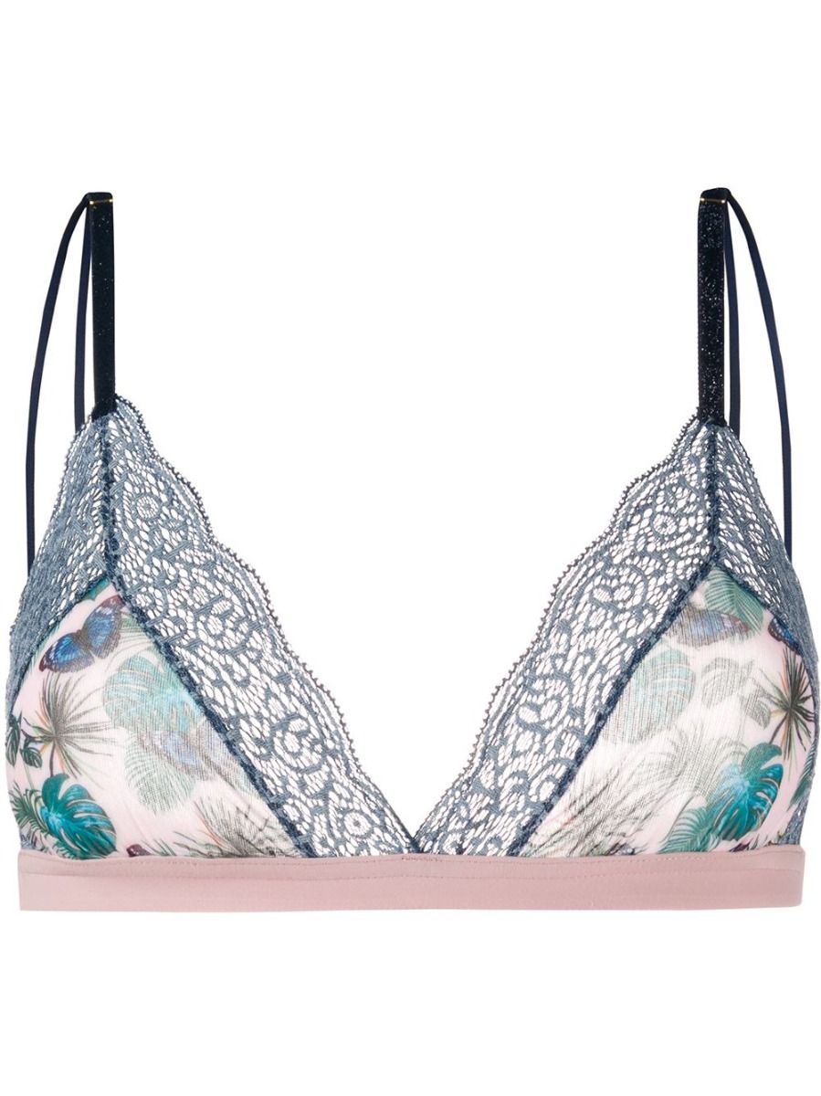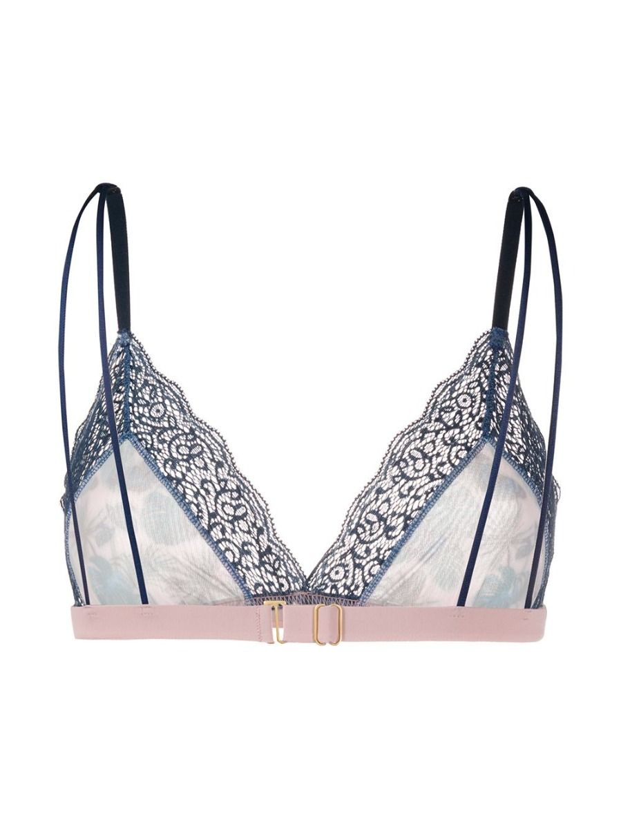 Blue cotton blend Butterfly soft bra from Dolci Follie featuring a lace detail, adjustable shoulder straps and a hook & eye fastening.