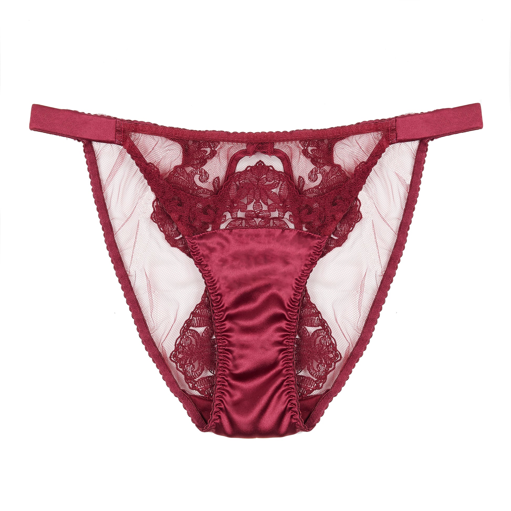 A classic Fleur of England design, the Gisele Ouvert brief is crafted in soft sheer Italian tulle featuring Fleur’s hand-drawn embroidery design. A playful peephole opening to the back adds an opulent sensual appeal, finished with a silk covered button adding an elegant touch of luxury.
