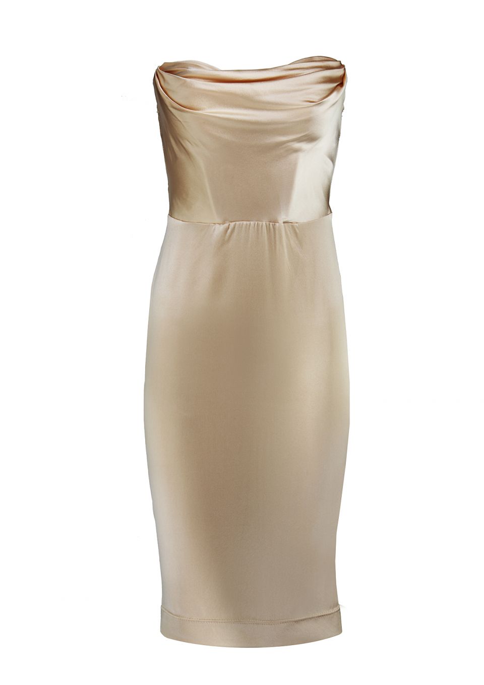 This beautiful gold silk evening dress has a stunning sweetheart neckline. A simple stylish knee length dress, tight fitted with a low cut back, creating the perfect shape. Featuring two elasticated gold plated straps. Included a halter neck strap for maximum support and lift. Dolci Follies very own exclusive design, Hand Made in London