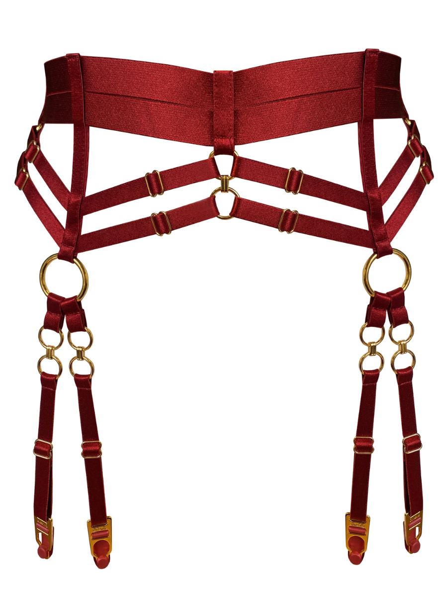 The Kleio Suspender is this season's showpiece. Constructed with 60 24k gold plated components and lustrous Signature satin elastic strapping, this suspender is an eyecatcher.