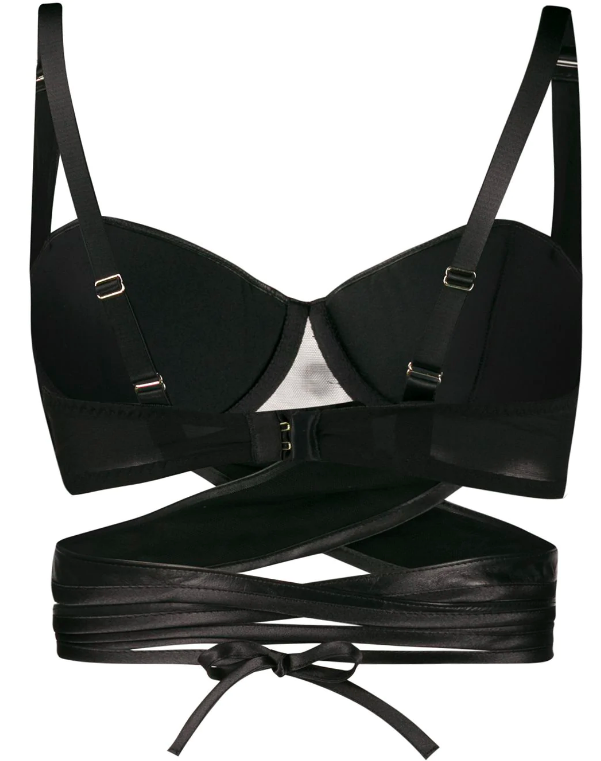 Black Lexi balcony bra from SOMETHING WICKED featuring adjustable shoulder straps, a bustier top, cut out details and a slim fit. Underwear and lingerie must be tried on over your own garments.