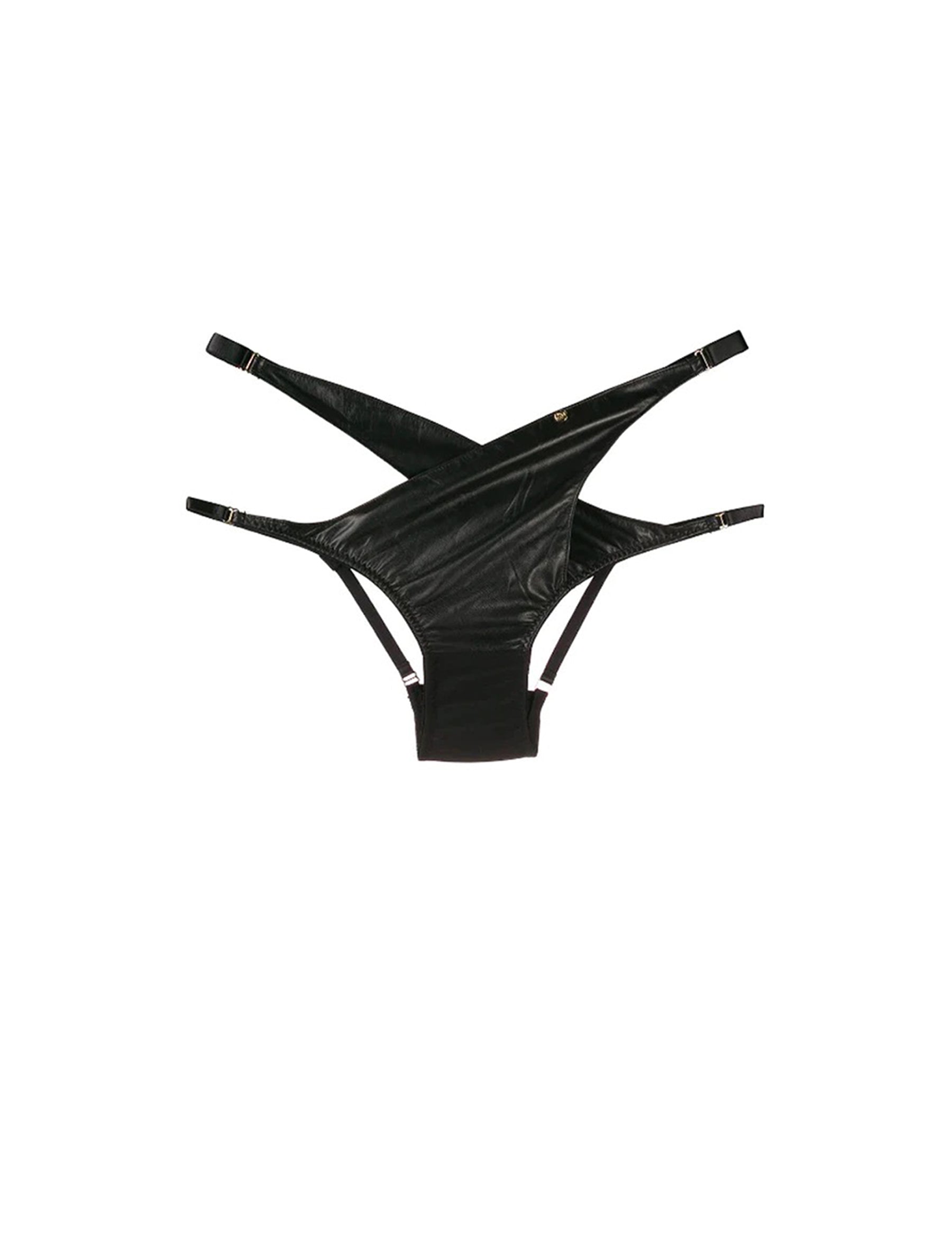 Black Lexi mini brief from SOMETHING WICKED featuring a strappy design and cut out details. Underwear and lingerie must be tried on over your own garments.