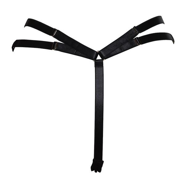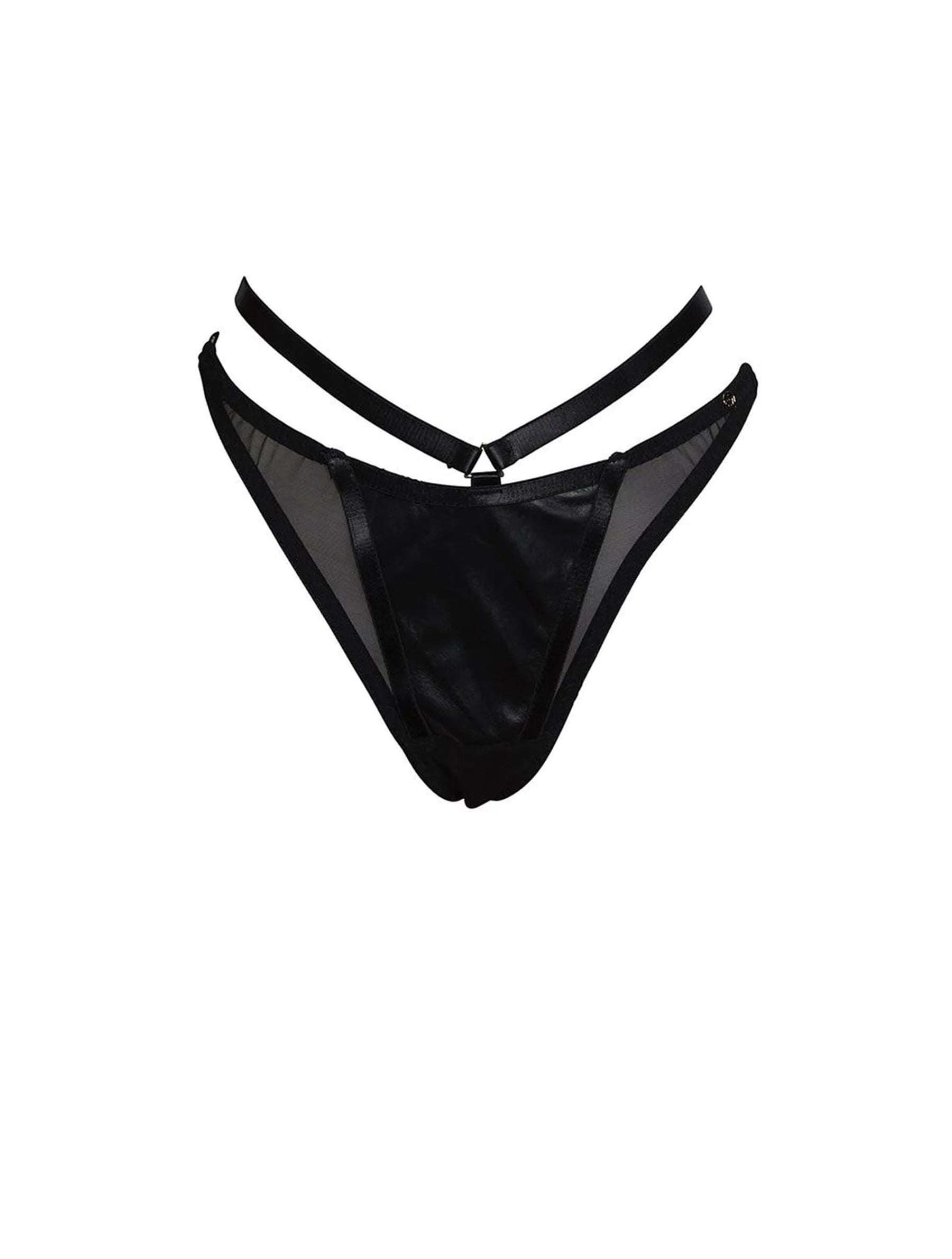 This striking piece of luxury lingerie will become one of the most versatile items in your lingerie drawer. The Mia leather thong features beautiful soft Japanese plonge leather at the front, framed by contrasting sheer panels. Double adjustable side straps take you round to the back where they meet single strap of elastic to create a dramatic visual. Stunning from all angles, sensual but sharp.