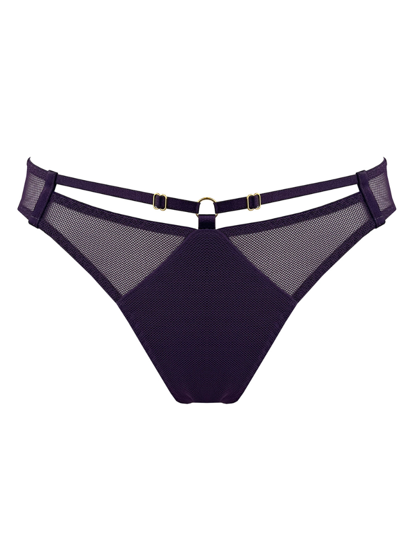 A modern take on a classic lingerie brief, this sheer mesh style is lightweight, sculptural and effortlessly wearable. Made from soft, open-knit stretch mesh, it features minimal detailing for a sleek silhouette with just enough coverage. Two 24k gold plated monogram components at the hips add bold detail, whilst the stetch fabric requires no adjustment to achieve a comfortable fit.