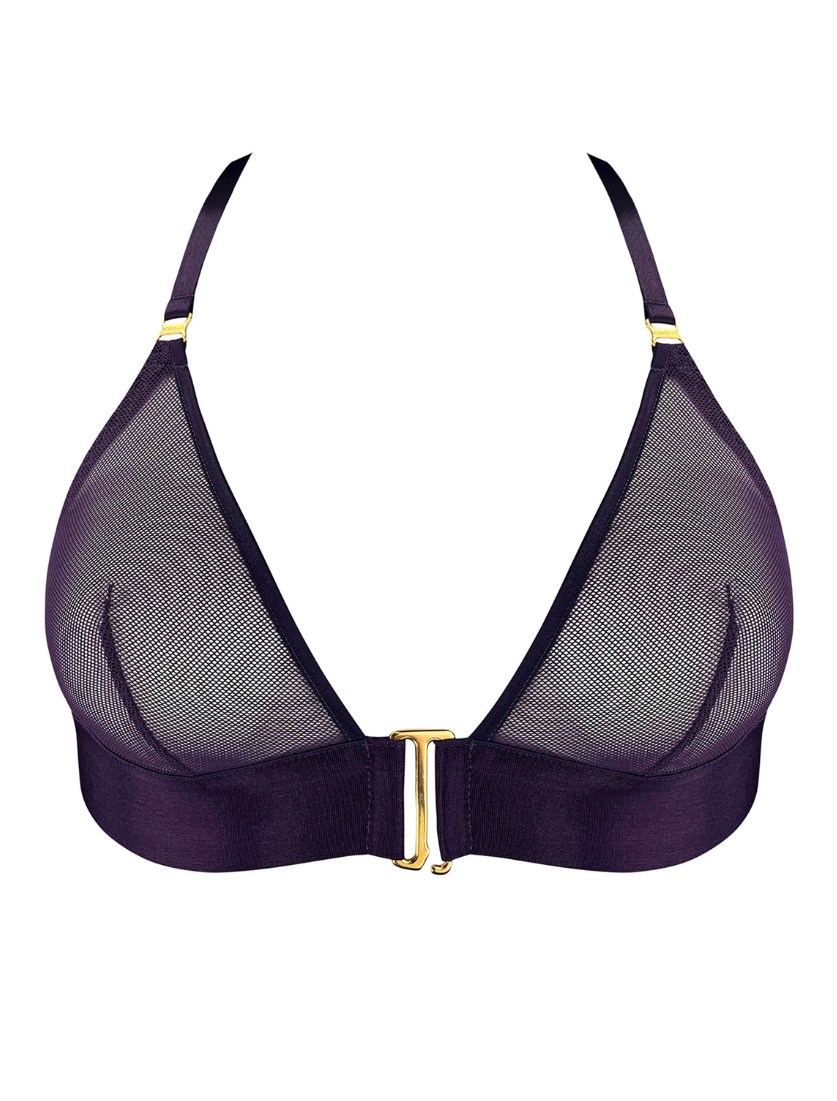 A soft bra designed for comfort without compromising on style, it combines sheer open-knit stretch mesh with soft wide band elastic to offer a clean, sculptural look. At the back, the open design is secured with a 24k gold plated swan hook and ring hook fastening. Lightweight and non-wired, it’s ideal for everyday wear, or to be styled up with Nipplets for a bolder statement.