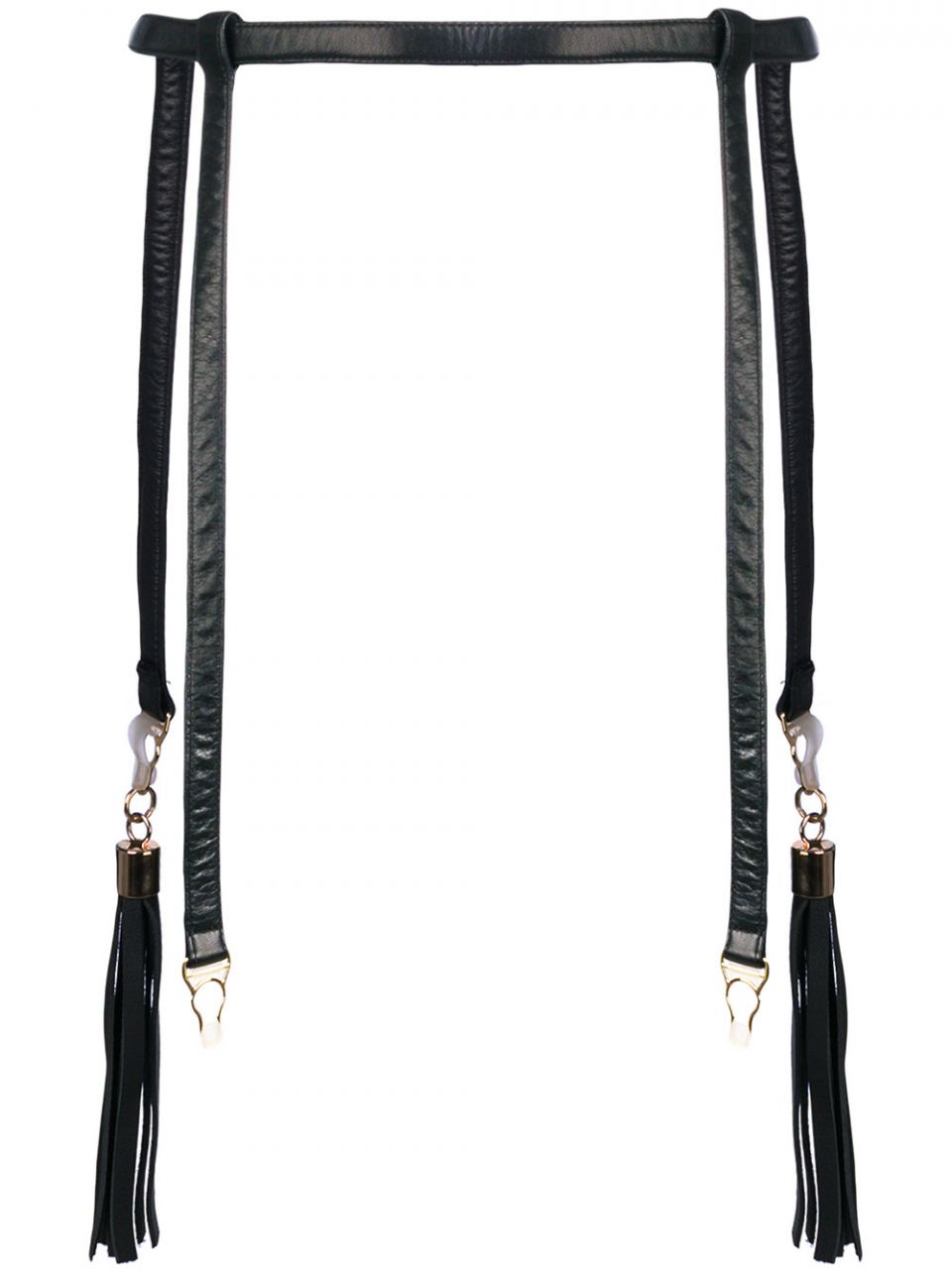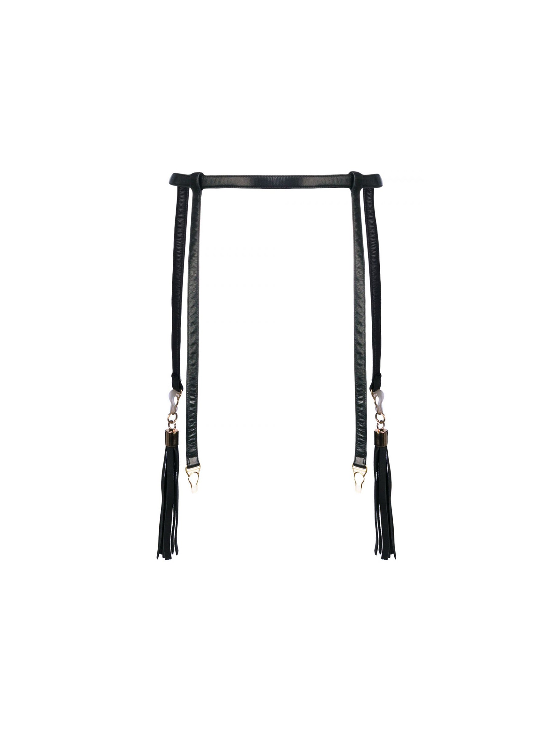 The Nina suspender in full leather with attached leather ponytail Tassels.