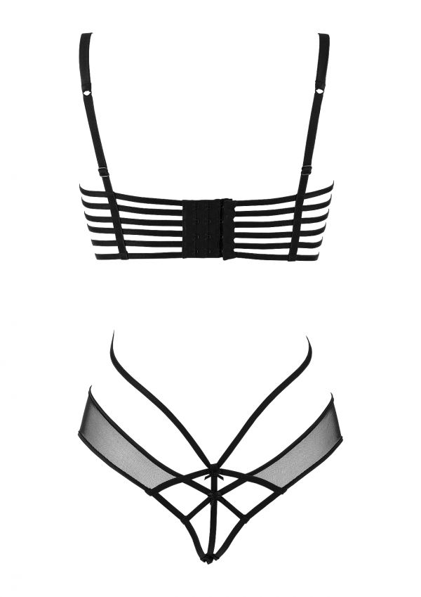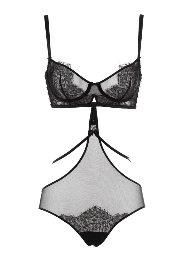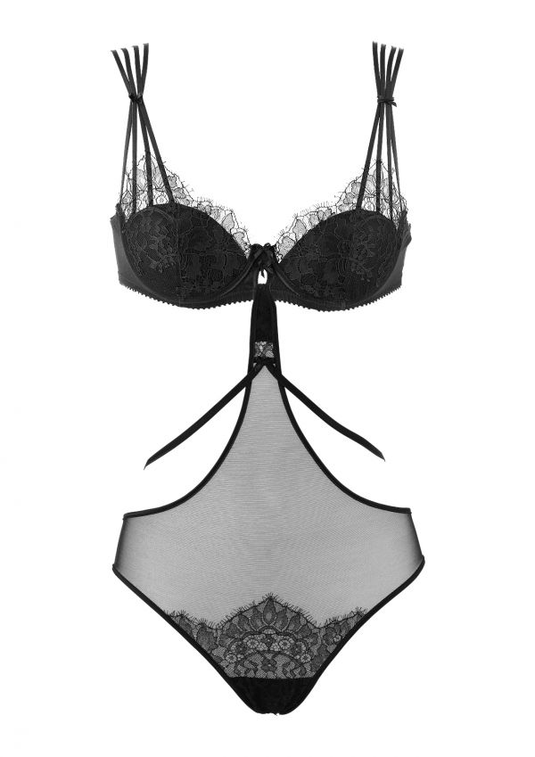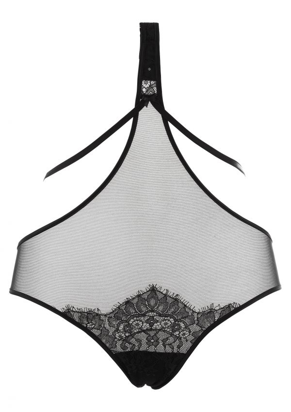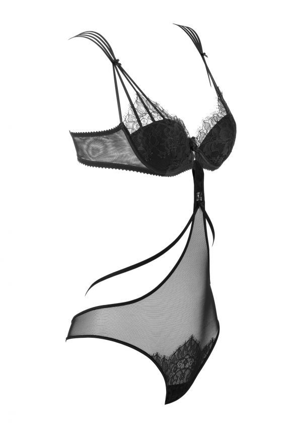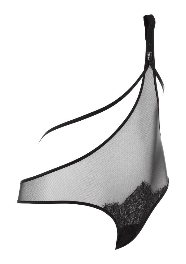 The Odette Body Brief are a fantastic piece with a seductive, suggestive edge. The long line front reaches up to fasten onto any bra, featuring black straps this brief has a show stopping back! Complete the ensemble with the Odette Bra.