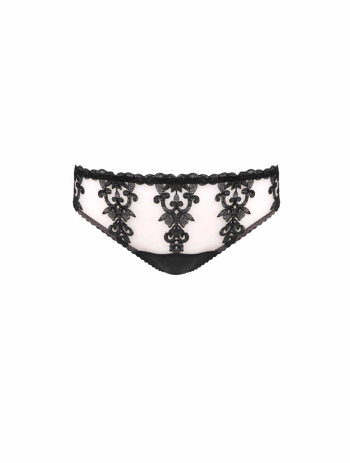Featuring a sheer tulle back adorned with a bespoke embroidery motif at the centre, this flattering hipster brief is both sexy and practical.