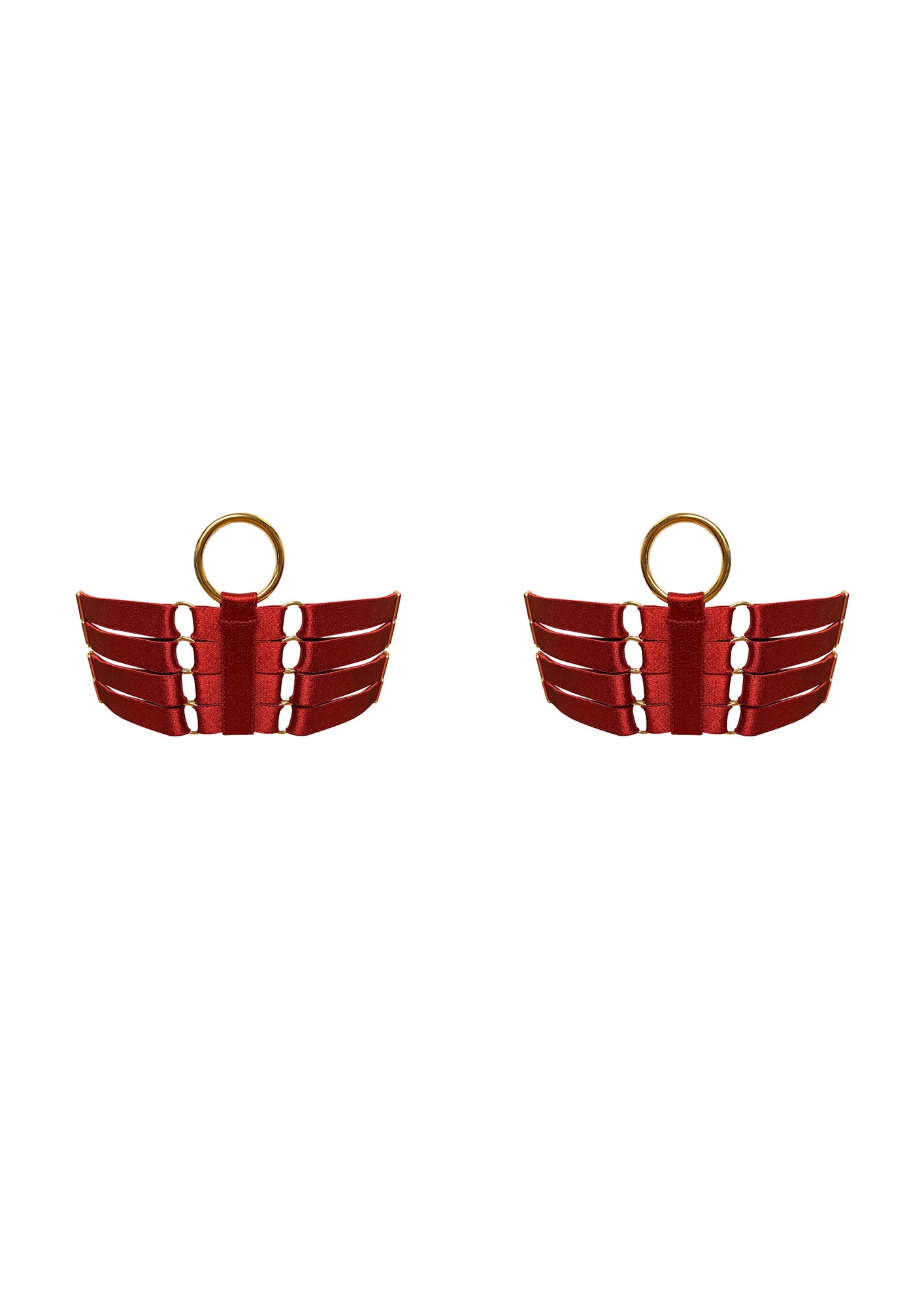 The perfect finishing touch to any Bordelle look, these garters can be worn alone, attached to suspender clips or over stockings. These satin elastic strap garters are the perfect bondage accessory. Fully adjustable straps allow for a personalised fit. Featuring oversized ‘O’ rings to attach to suspender clips.