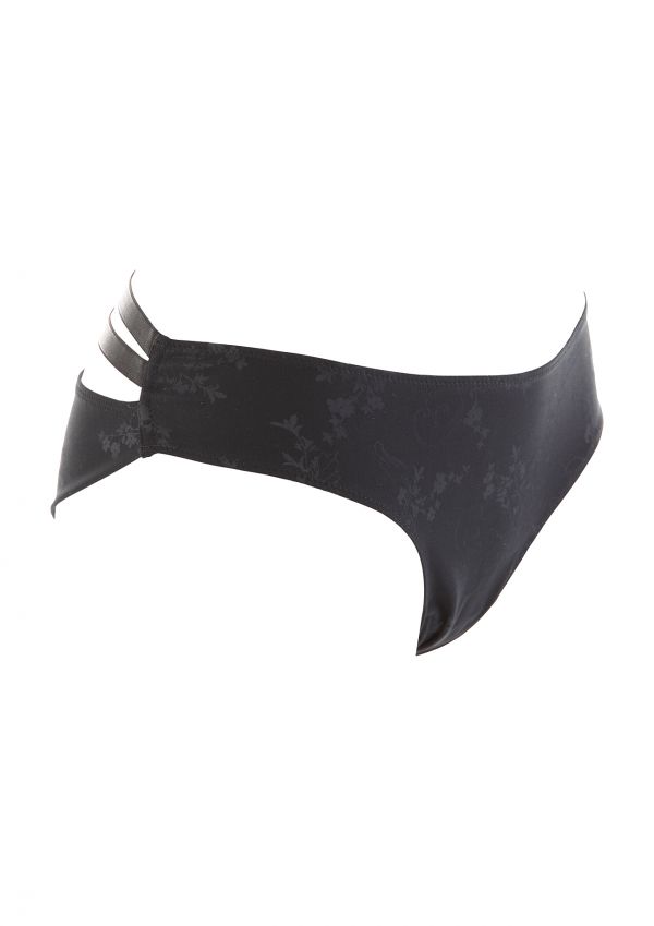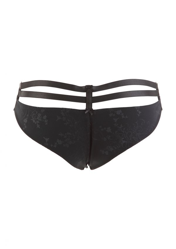 Classically sexy and seductive, this stylish jet black brief has a beautiful feminine tone-on-tone floral design. Featuring a modern strap design on the back.