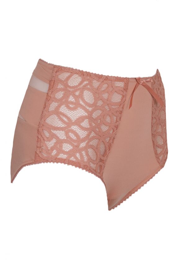 Gorgeous high-waisted briefs giving a vintage style look. Sheer lace panels at the front give a flattering shape, whilst sheer panels at the back give a cheeky, seductive feel.