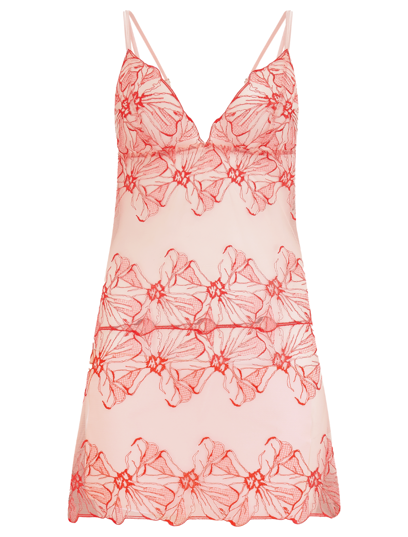 The Rosa babydoll is a statement piece in this romantic and enchanting collection. Designed to entice, the skirt is made entirely from soft recycled tulle and is adorned by bespoke embroidery, hand-designed in the UK by brand founder Fleur and brought to life in Switzerland. This bestselling silhouette features non wired triangle cups, and an elasticated under bust for comfort and movement. Available in sizes S, M and L, Double silk shoulder straps lead to the back where a hook fastened keyhole opening can be utilized for ease of wear.