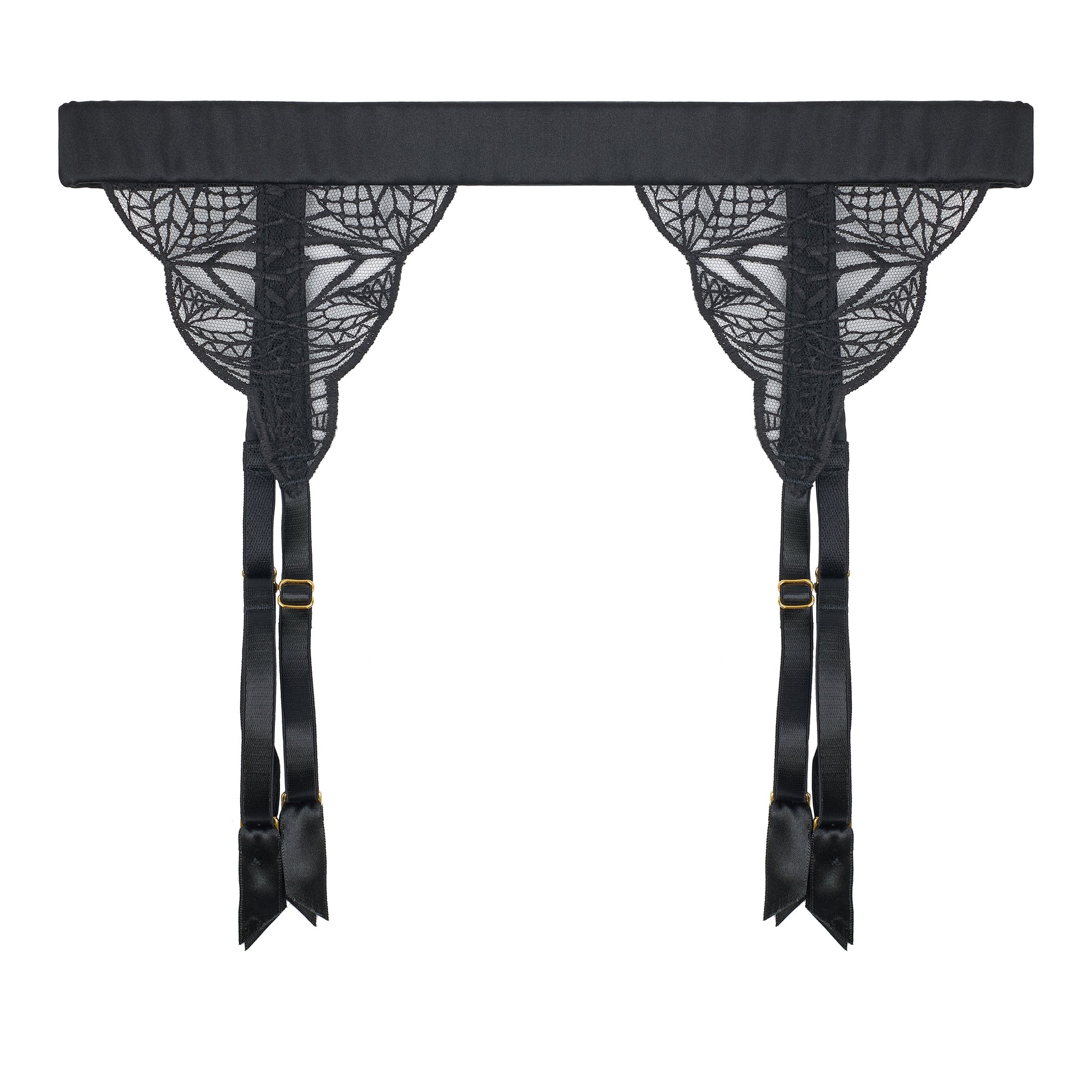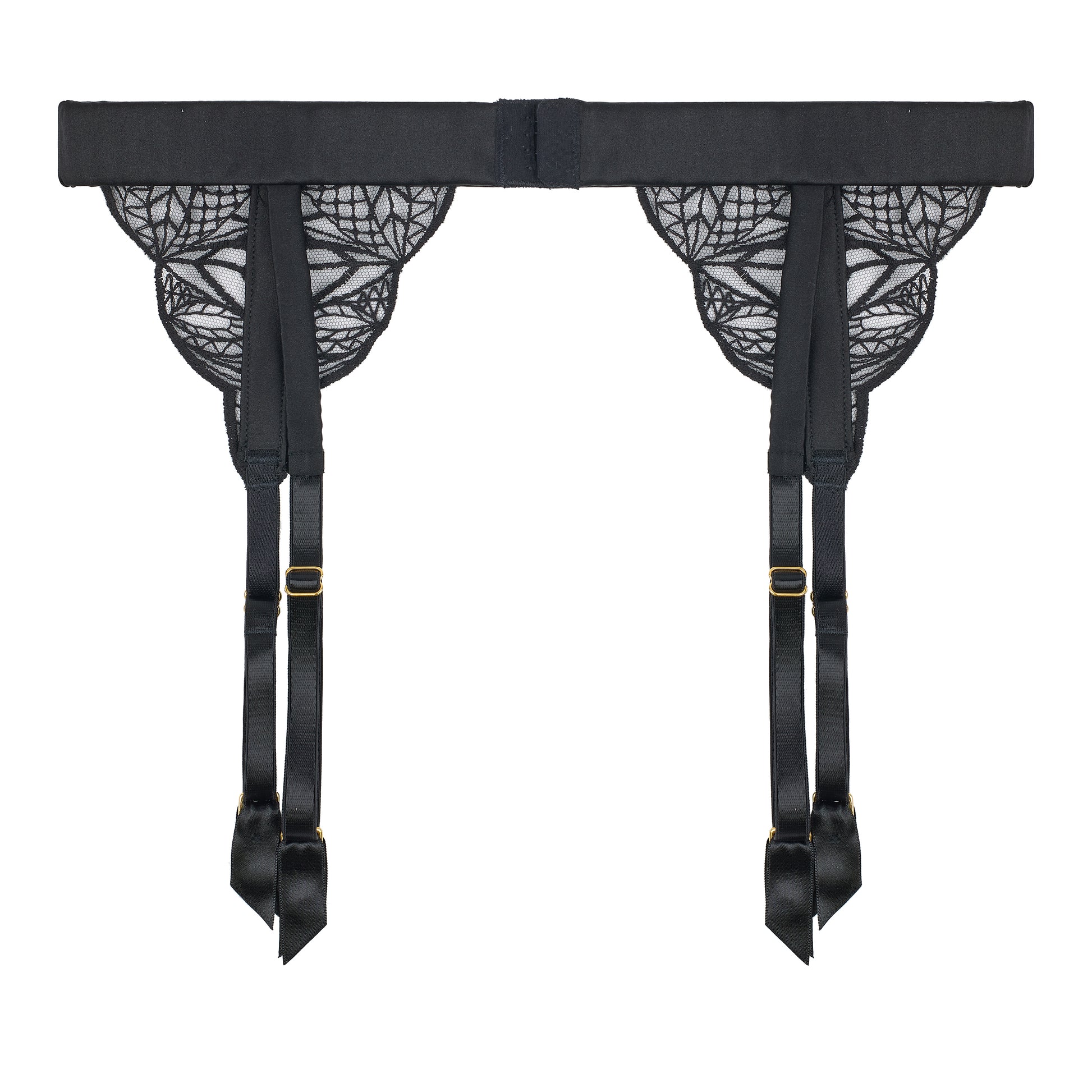 Crafted using elastic encased in the finest silk in black, the adjustable belt means you can unlock your perfect fit, whilst achieving a smooth silhouette. Featuring hand-drawn embroidery motifs, the suspender straps are finished by hand and complimented with 24-carat gold-plated hardware.