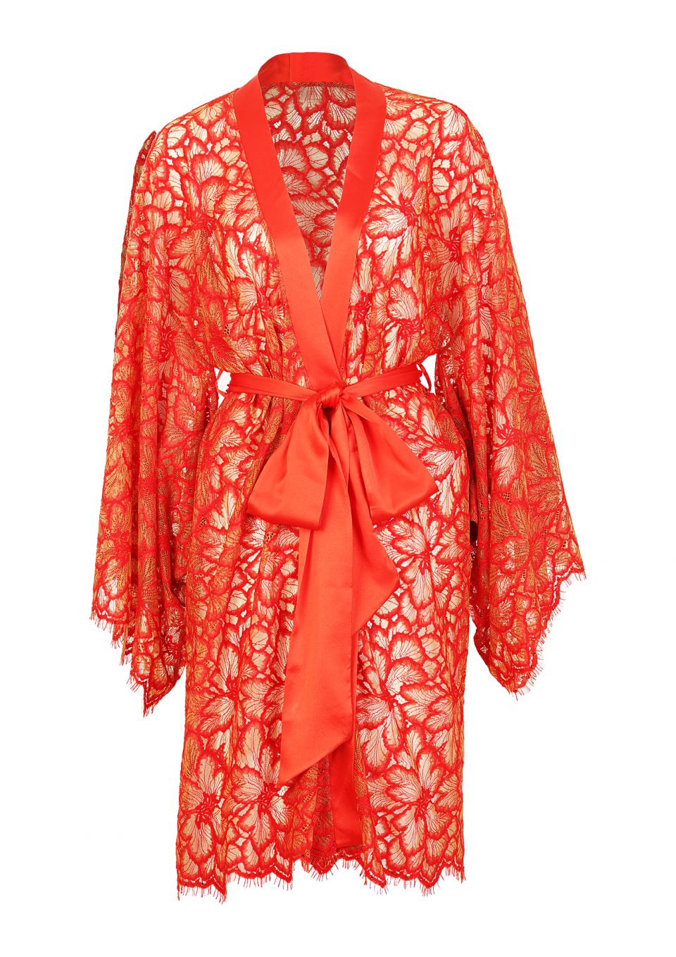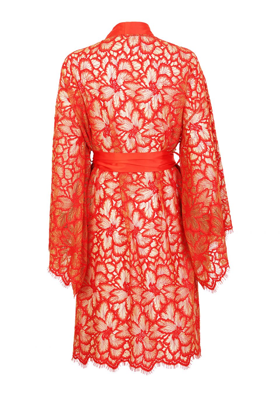 Rust coloured lace kimono, trimmed with Swarovski crystals