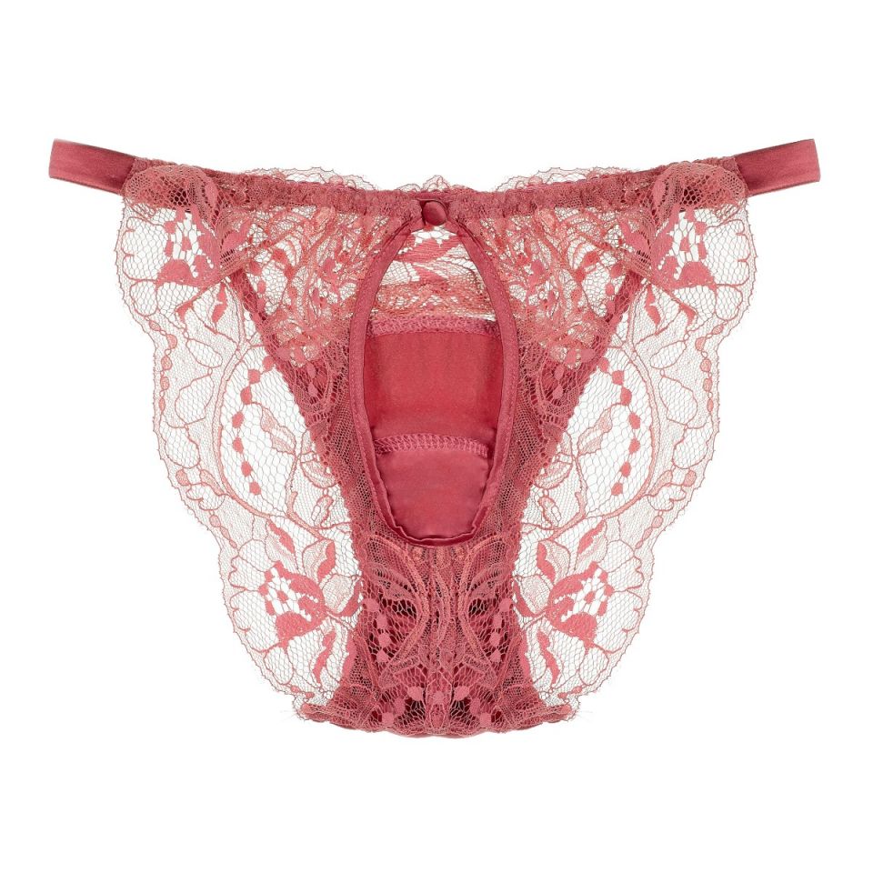 Alluring and delicate this luxury lingerie piece is a must-had addition to any luxury lingerie wardrobe. A playful peephole opening to the back adds a seductive appeal whilst the French lace and silk panels to the front exude luxury. Finished with a silk-covered button for a soft and comfortable feel.