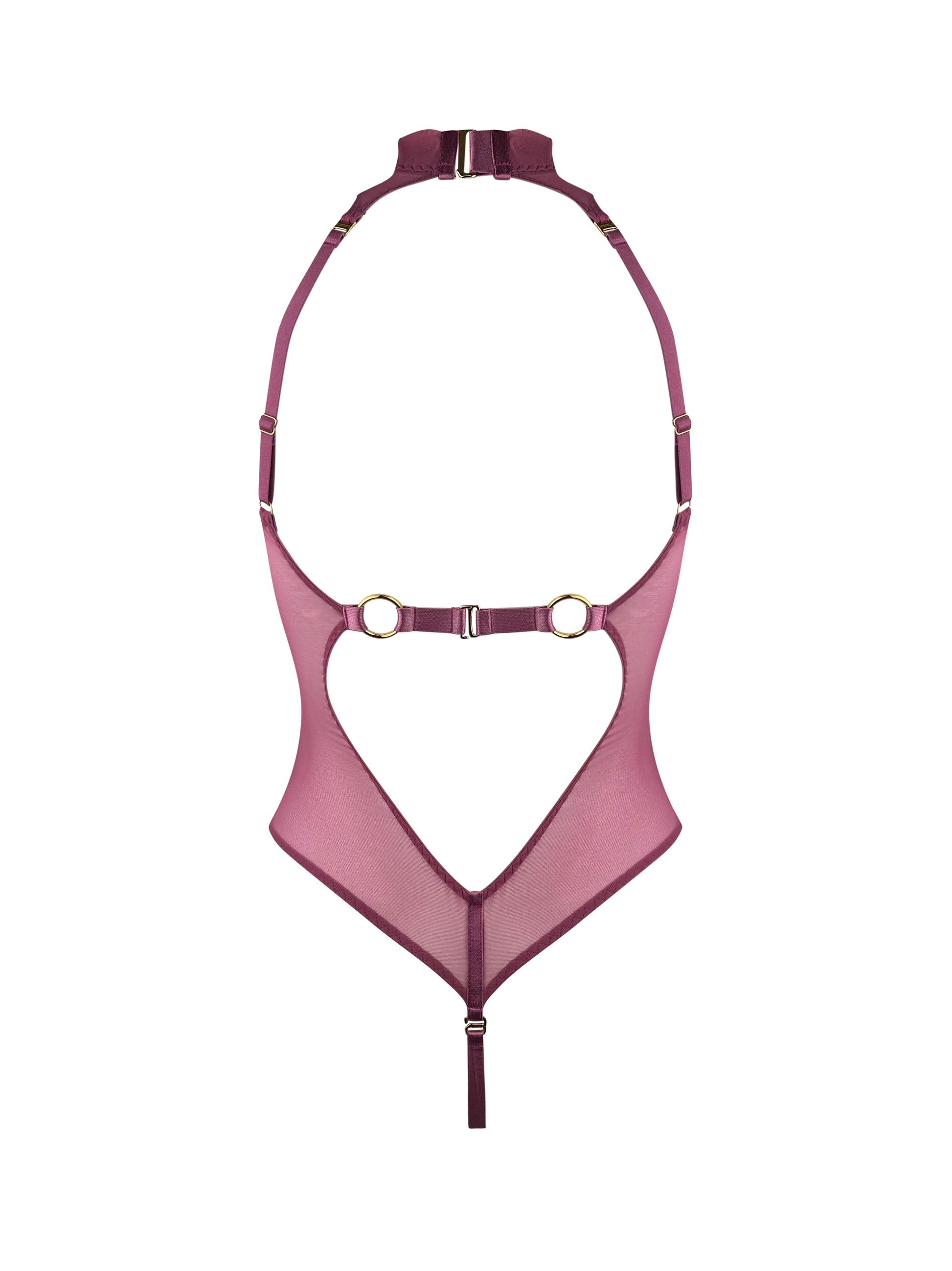 A soft sheer mesh bodysuit creating a classic, elegant silhouette. Sheer, sexy and comfortable, the soft mesh contours the figure while three 24k gold plated swan hook fastenings secure the neck, back and thong strap. A seasonal addition of the iconic Signature style.