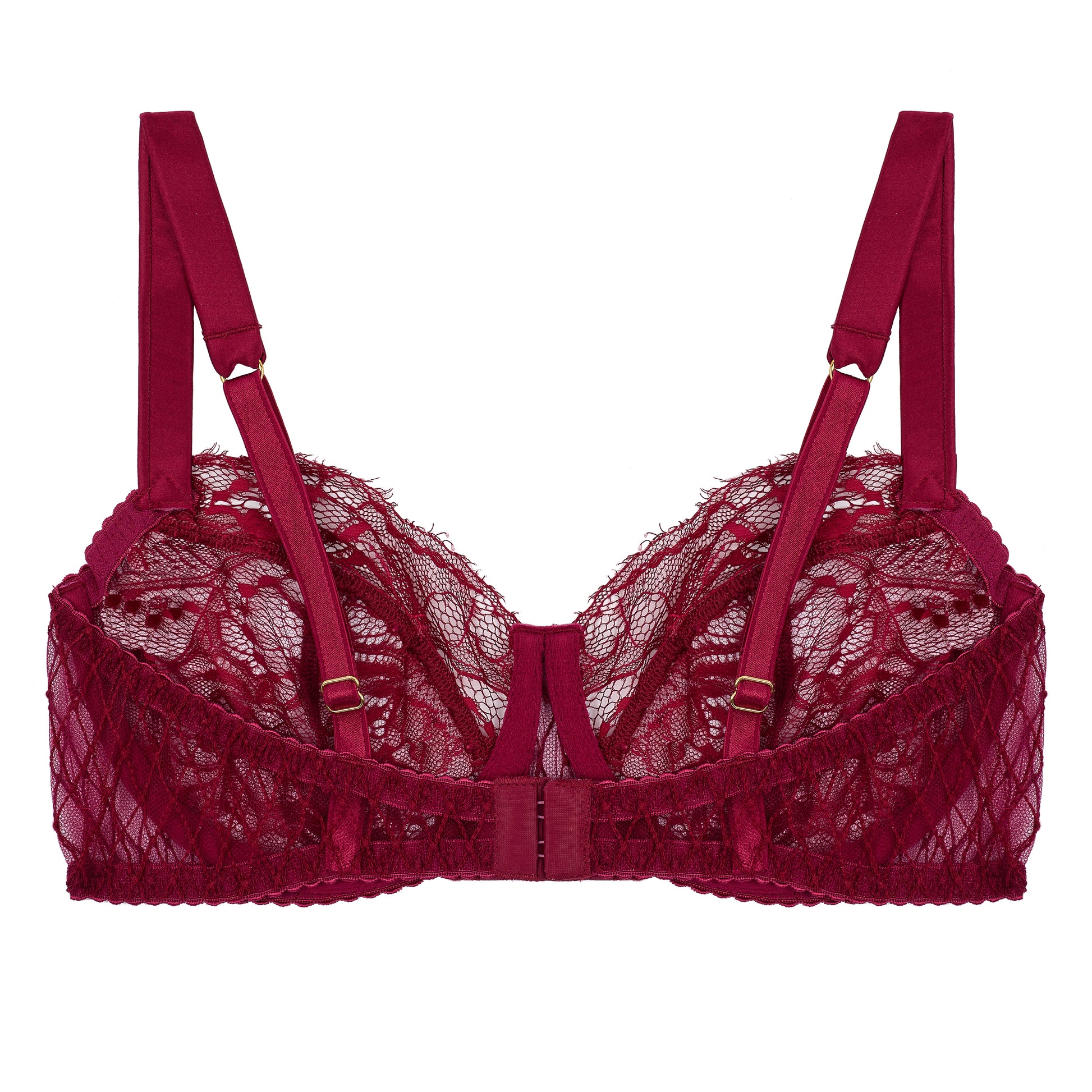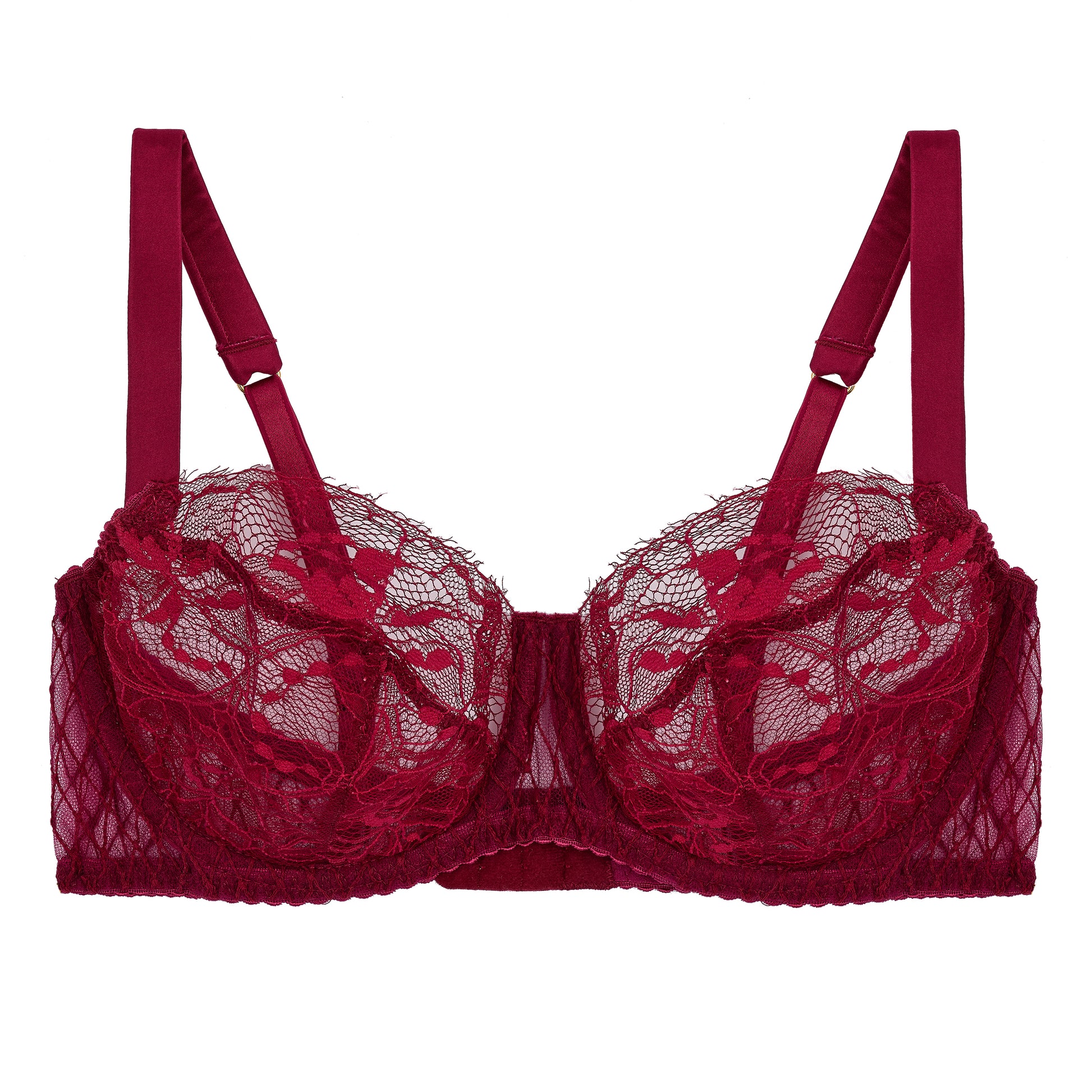 A Fleur of England classic design, the Simone Balcony Bra is crafted in exquisite French eyelash lace that adorns the bust, whilst soft silk in beautiful rouge the waistband and luxuriously encases the silk straps. Luxuriously finished with 24-carat gold plated hardware.